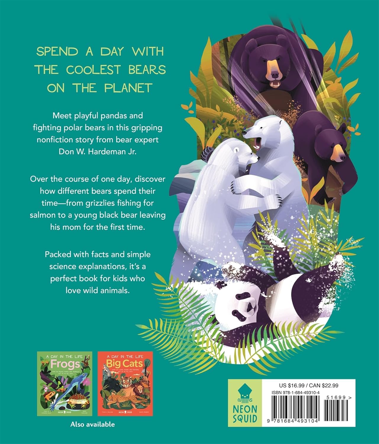 Set over a 24-hour period, meet black bears, grizzlies, and cute polar bear cubs in this kids' nonfiction book by expert Don Hardeman Jr.