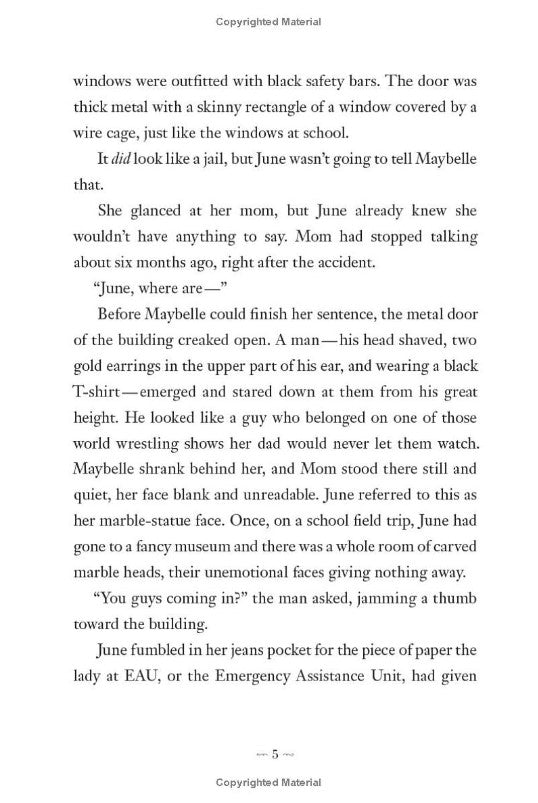 But Tyrell has lived at Huey House for three years, and he knows all the good things about it: friendship, hot meals, and the music from next door drifting through the windows. With his help, June begins to see things differently. Just as she's starting to understand how Huey House can be a home, a new government policy threatens all the residents. Can June and Tyrell work together to find a way to save Huey House as they know it?"