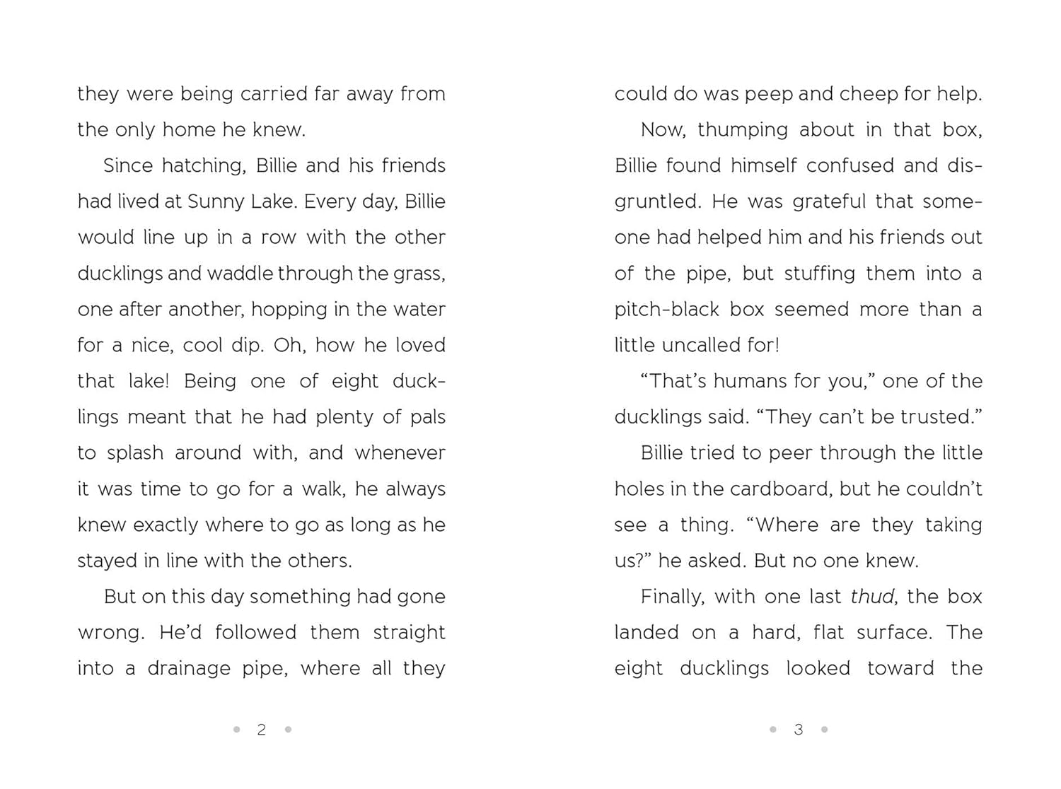 "Three little ducklings arrive in Fosterland, but one is not like the others! Though Billie looks like Marlie and Charlie, he isn't a domesticated duck--he's a white mallard. Billie likes being in Fosterland with his friends, but he longs to eat sky raisins (also known as flies) and be free. With one webbed foot in each world, he has to choose where his heart lies."