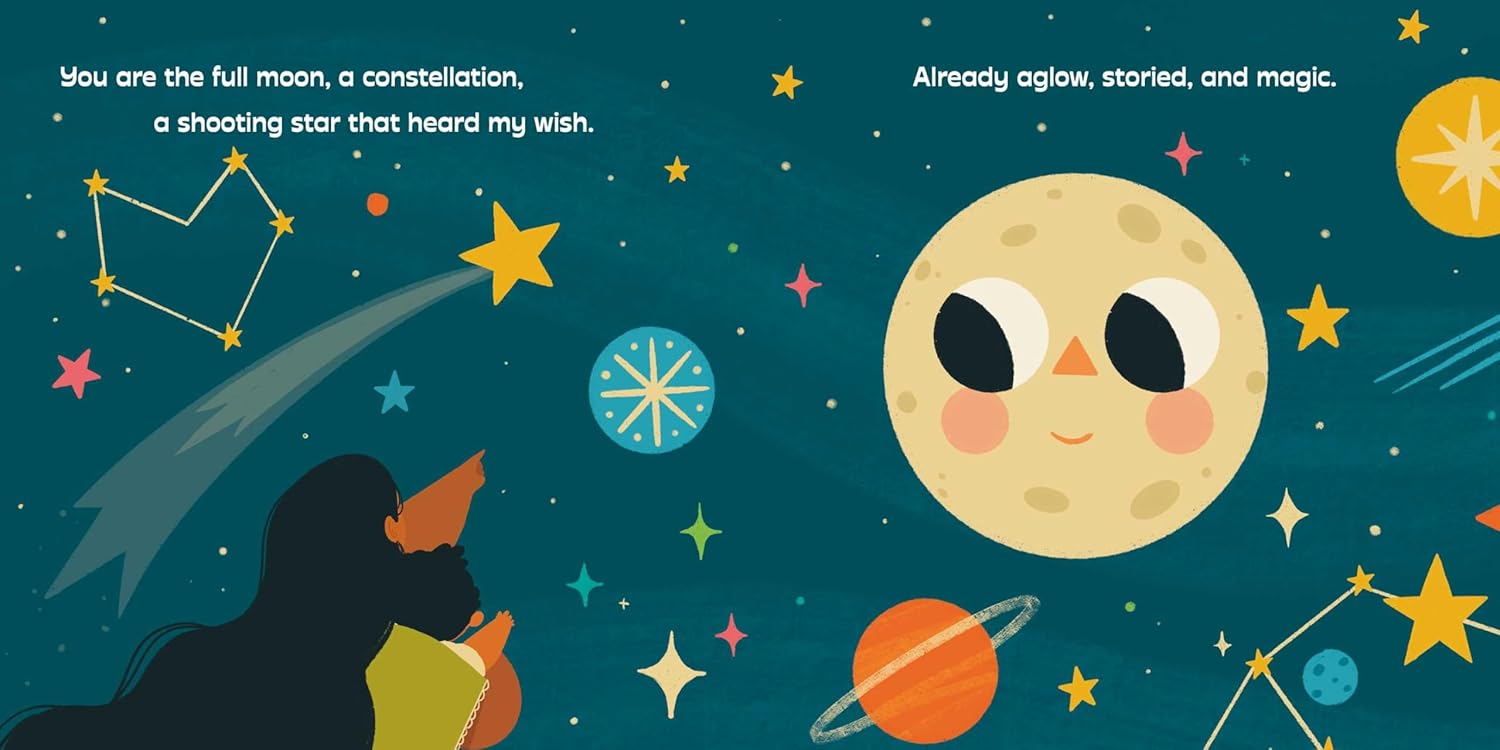 In this gorgeous board book, when thoughts of a baby's future start to pull at a parent's attention, they pause to reflect on the joy, wonder, and love already overflowing in their lives. This gentle, calming text will help any caregiver slow down and marvel at the remarkable baby in front of them.