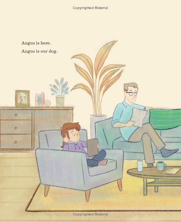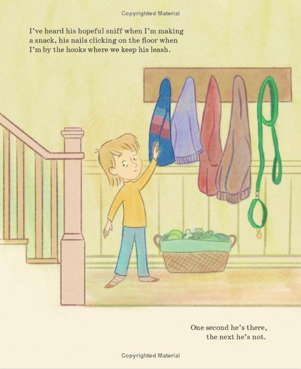 Angus may be gone, but memories of him are still here: his tail wagging under the dinner table, his nails clicking on the floor, and his hopeful sniff when snacks are being prepared. Angus's presence is felt everywhere, until one day... it's not. In this poignant and beautiful picture book, a child journeys through grief and learns how to keep memories of a beloved dog close.