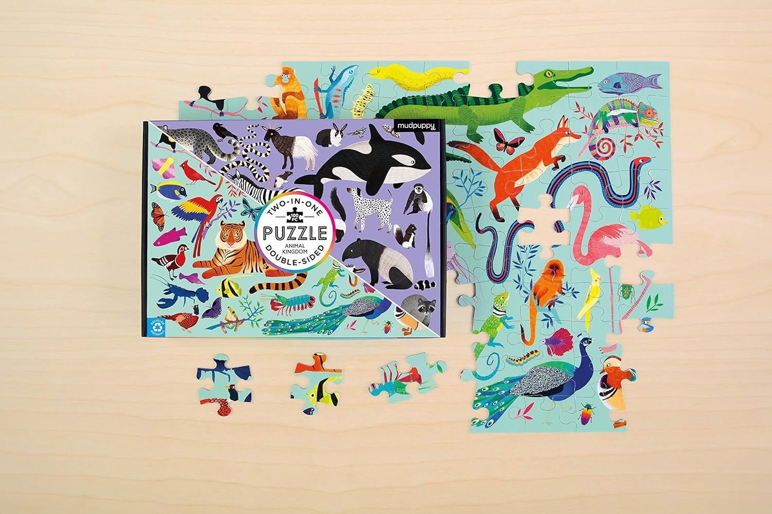 AWARD-WINNING PUZZLE: The Mudpuppy Animal Kingdom Double-Sided Puzzle is a Tillywig award winner for Best Family Fun.