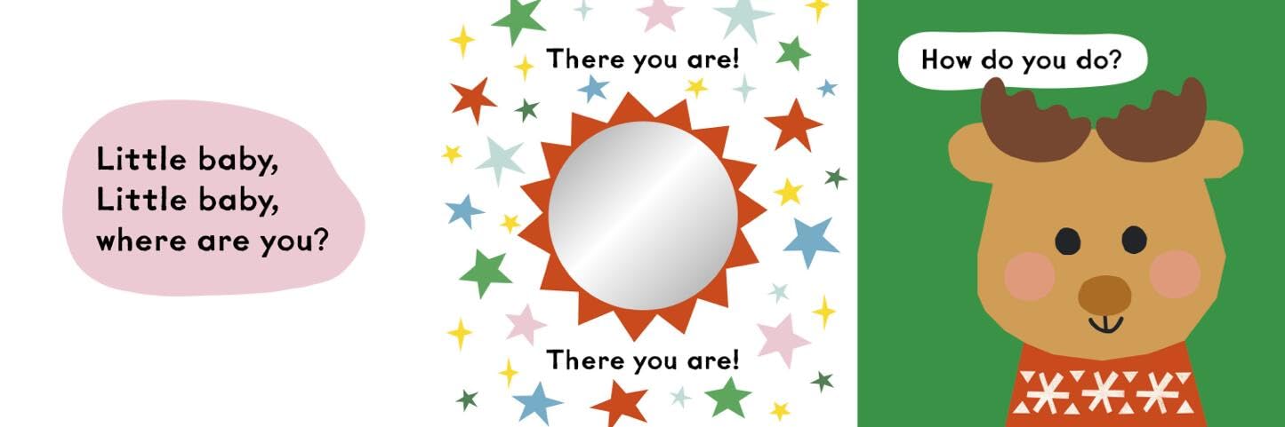 One thing is for sure - babies love mirrors! Peek behind durable card flaps featuring friendly animals to find yourself and your baby in four hidden mirrors. The large card flaps are easy for even the littlest hands to grab, and babies reach for these books again and again throughout the holiday season!