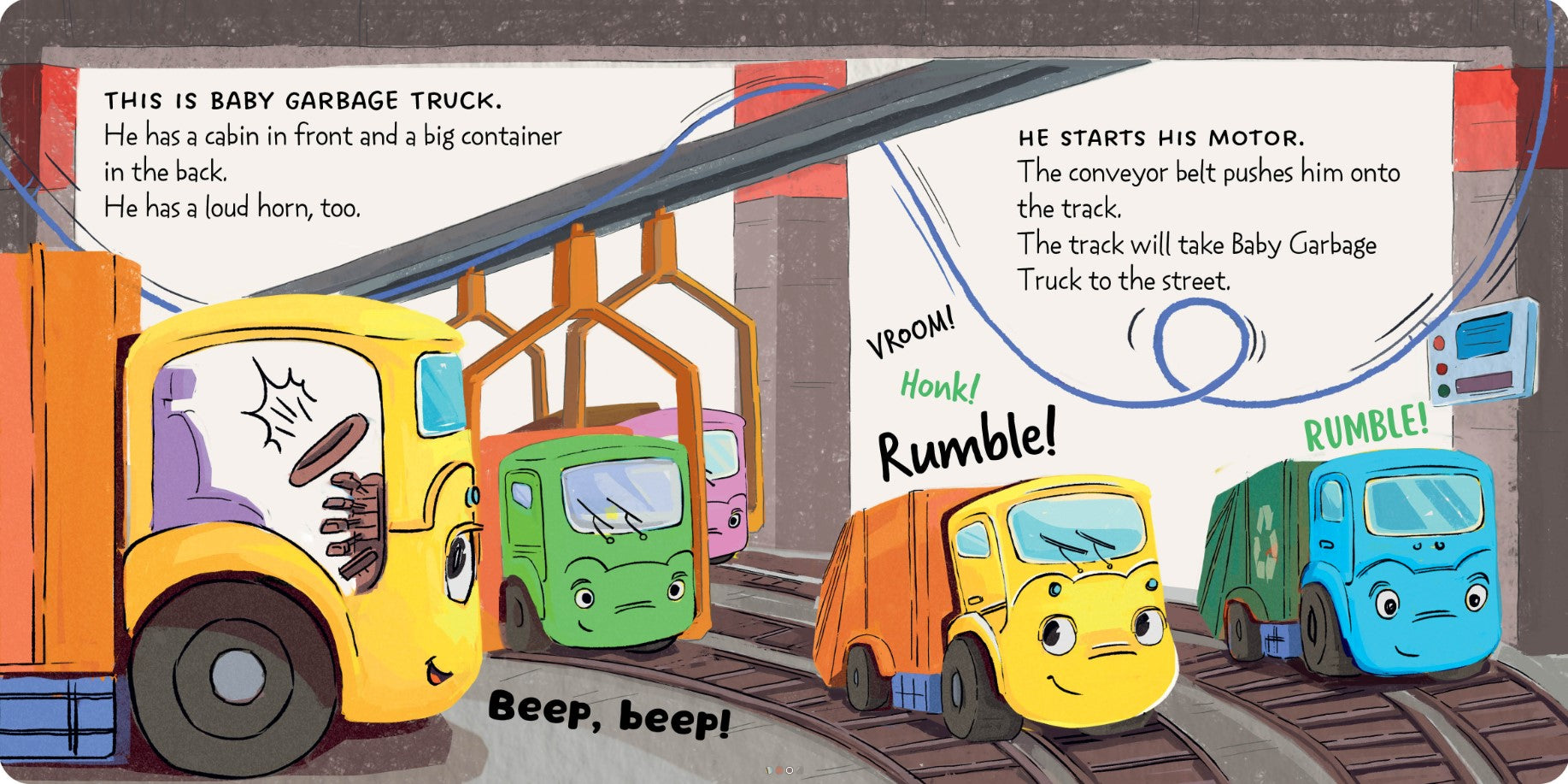Meet Garbage Truck! He's fresh out of the factory and ready to make friends. As he travels around the city, he sees trucks that carry water, wood, and milk. He meets a car transporter and a street sweeper. And all together, they help the city to be the best it can be!