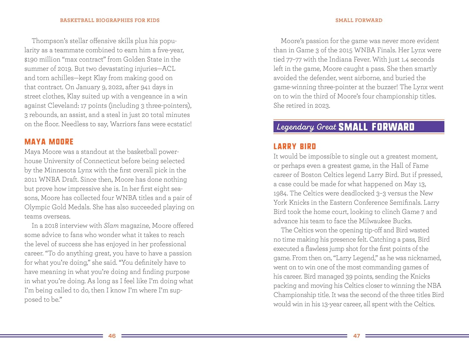 Basketball is filled with inspiring stories of world-class athletes working hard and overcoming challenges to shine on the court. Discover the most talented players from each position with Basketball Biographies for Kids! This lineup shows you what it takes to be a WNBA or NBA superstar with the amazing stories, stats, and achievements of the best players from the last 60 years.