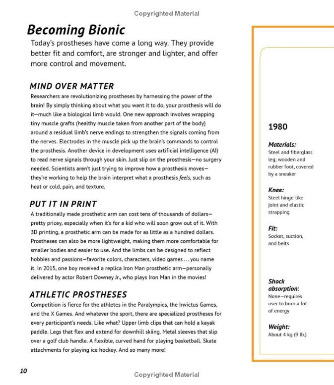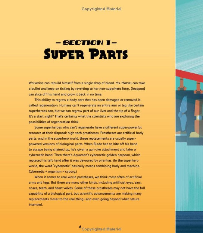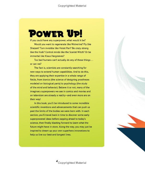 This middle-grade nonfiction book uses superheroes to explore how science is transforming our bodies and our experiences. Engaging text, detailed timelines, and intricate diagrams break down how superhero traits have been reflected in technological innovations throughout history, and how they could appear in the future. Jetpacks and rocket belts can help us fly like Superman. Prosthetic limbs and lab-grown human tissue mirror the regenerative powers of Wolverine and Ms. Marvel. But readers are also invited to think critically about these incredible, and sometimes controversial, advancements--after all, with great power comes great responsibility!