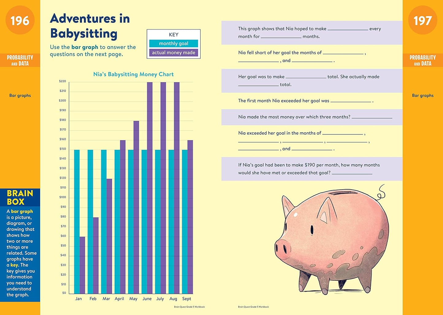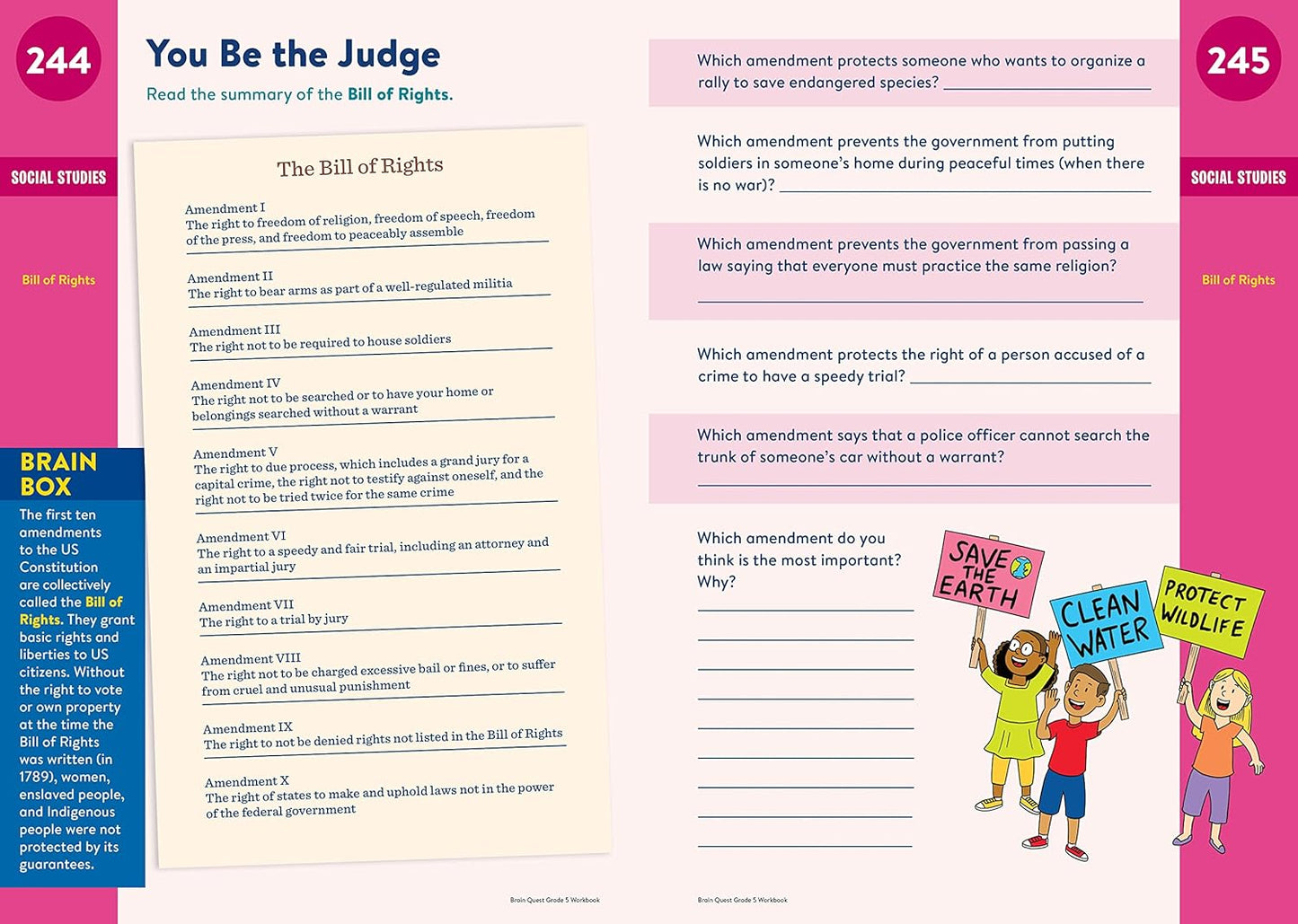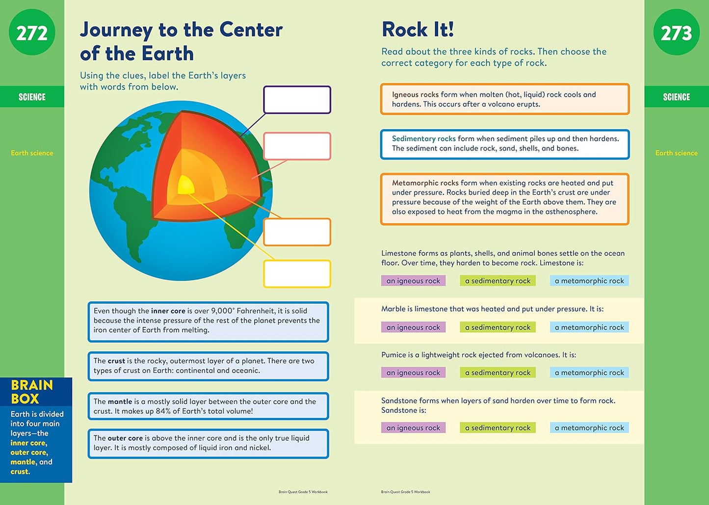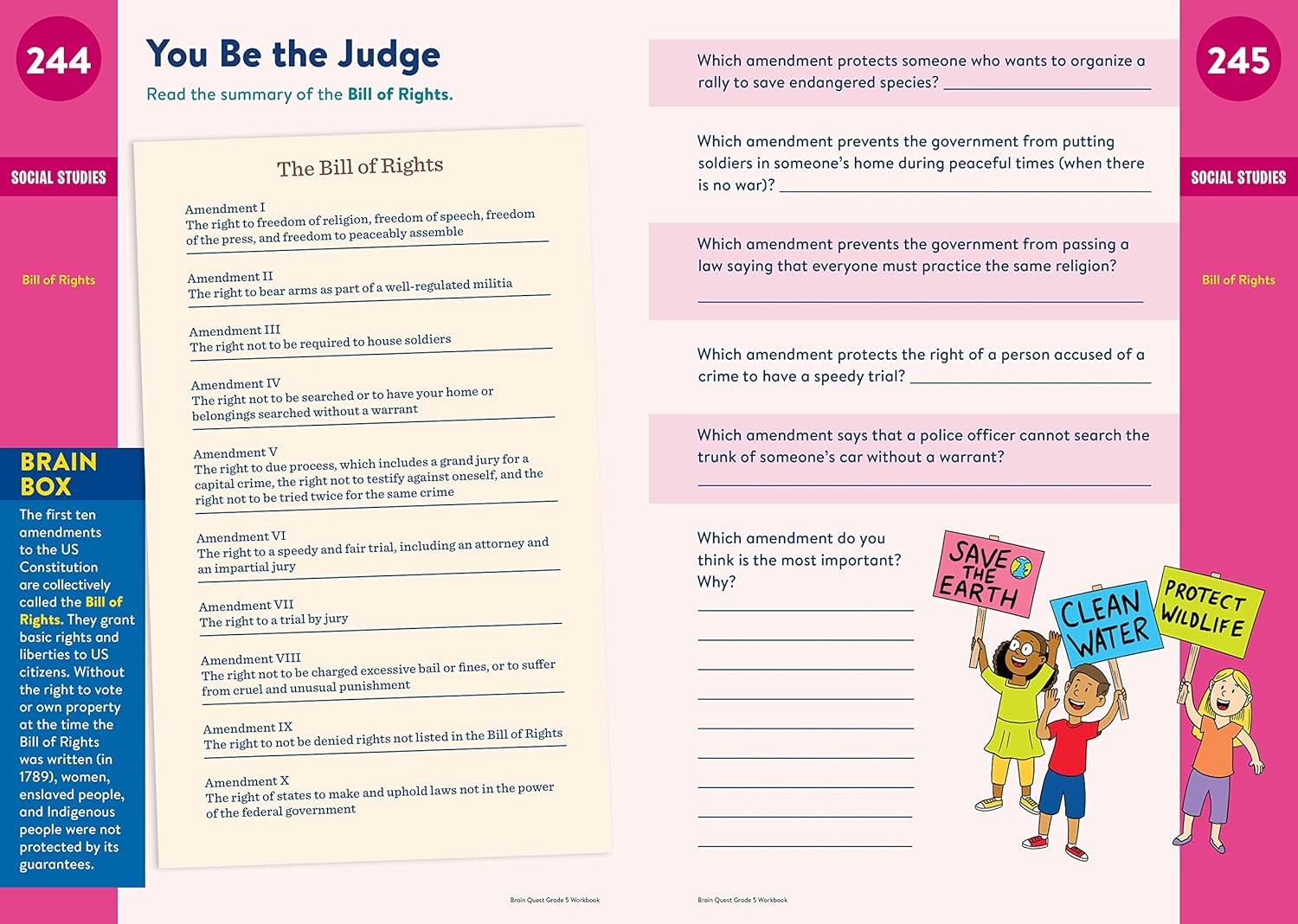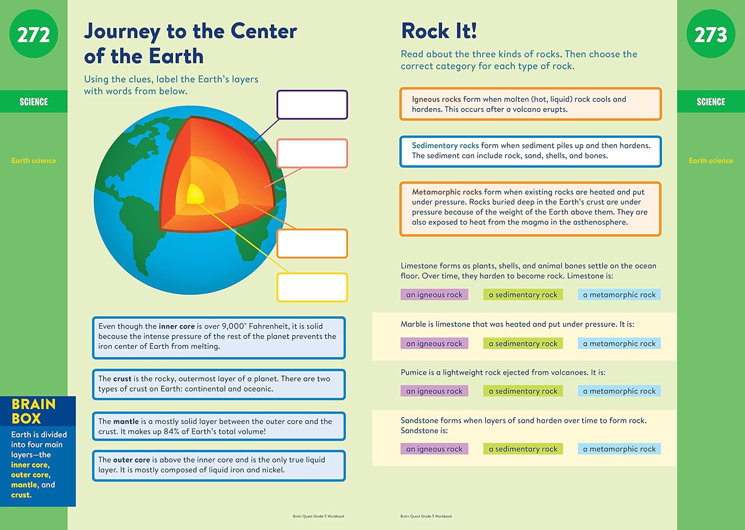 Loved by kids, teacher approved, and trusted by parents, Brain Quest Grade 5 Workbook reviews and reinforces what children are learning in the classroom in an instantly engaging, entertaining way. Each page is jam packed with fun activities, practice exercises, and games covering vocabulary, language arts, math word problems, multiplication and division, fractions and decimals, geometry and measurement, social studies, science, and much more.