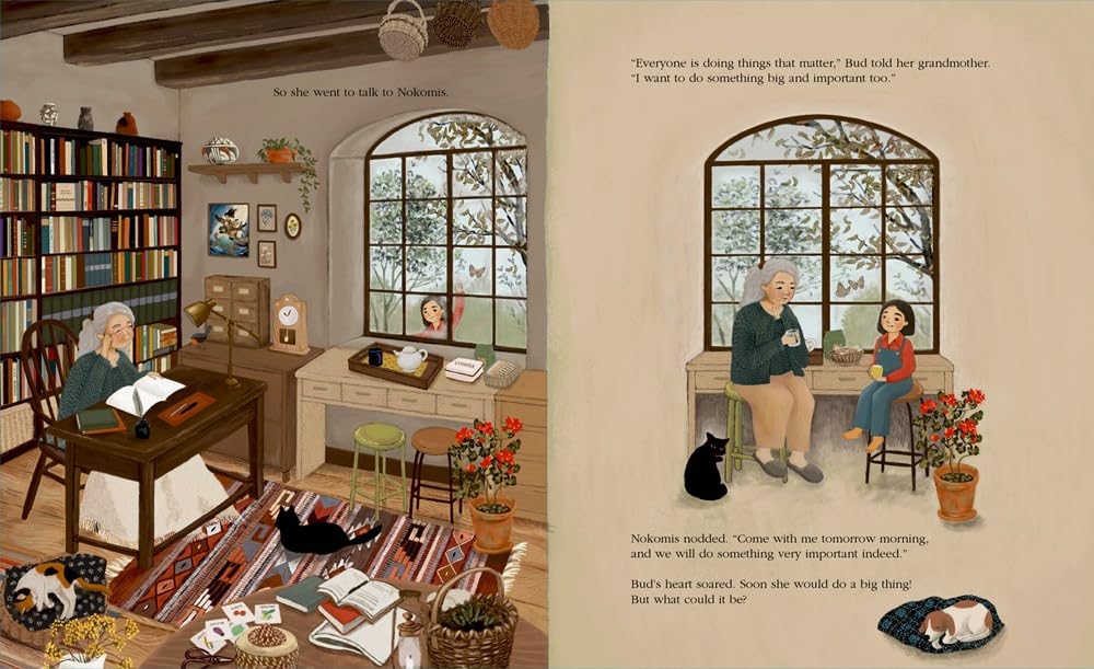 When young Bud sees people bustling around, intent on their chores and their screens, she is certain they must be doing important things--and she wants to be included. But wise Nokomis, her grandmother, shows her that there is a different way to find belonging, one that relies on stillness and observing the natural world. As Bud discovers the freely given gifts of the Earth, she wonders if she has something important to give back: What is her gift?