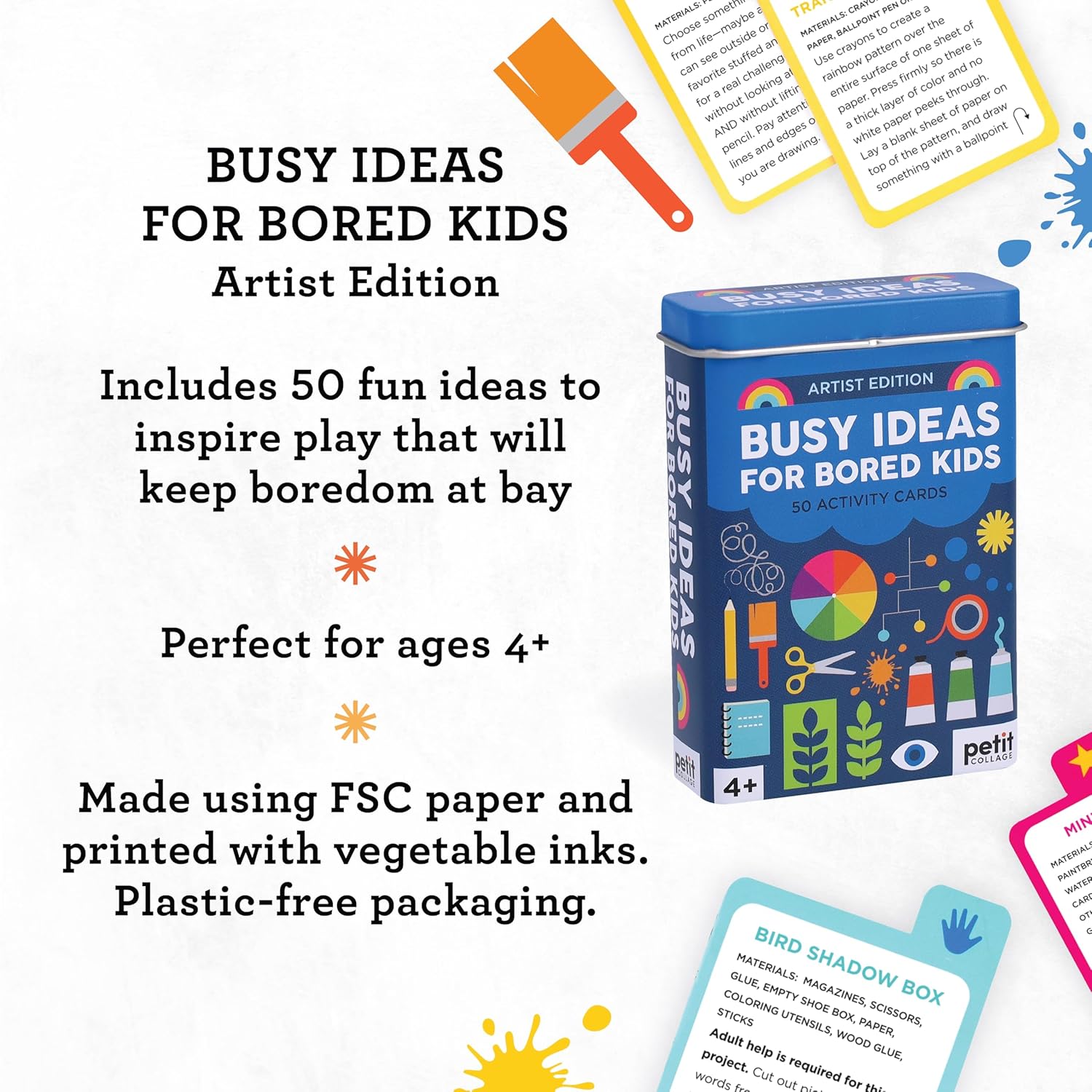 Need some ideas to brighten up kids’ days, spark creativity and imagination, or get them up and active and away from screens? Pick a card from Busy Ideas for Bored Kids: Artist Edition!
