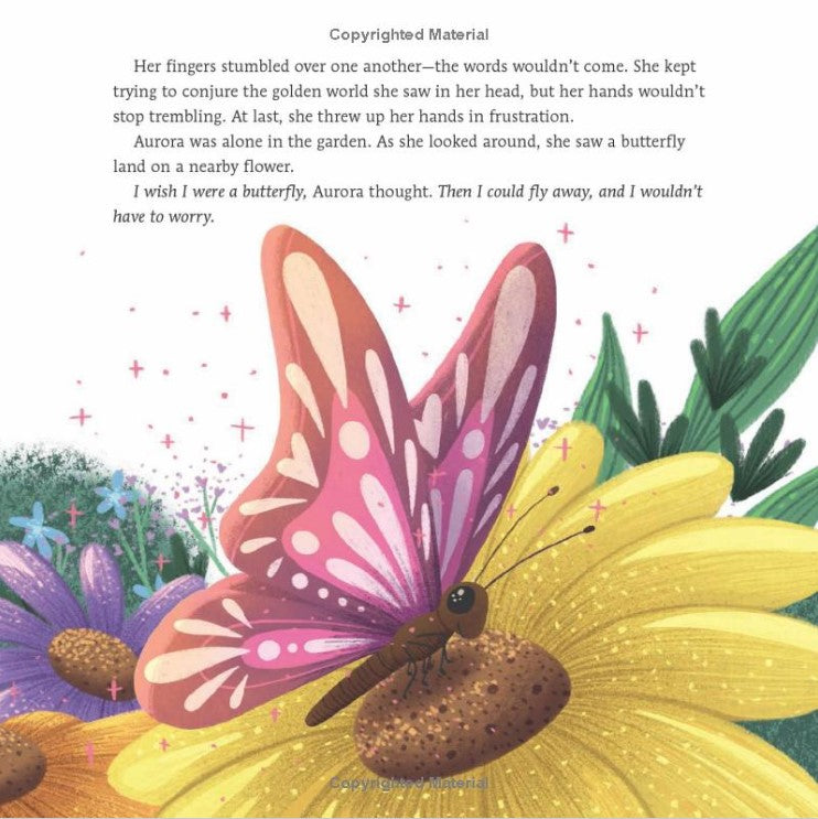 On the day of the talent show, Aurora's hands tremble. No matter how hard she tries to sign, her fingers stumble over one another and the words just won't come. But as she's about to give up, she spots a butterfly.