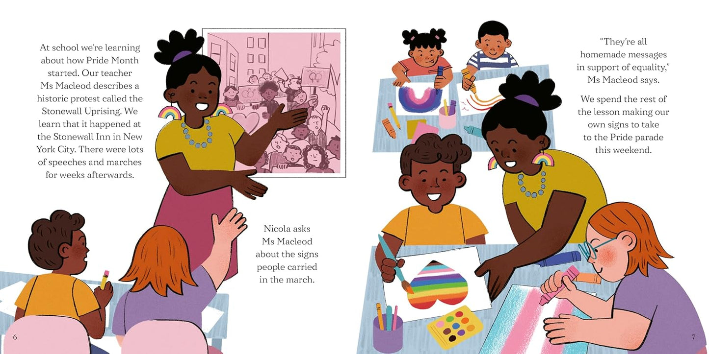 Join Brian and his friends at school, where their teacher Ms Macleod tells them how Pride Month started with the Stonewall Uprising and the fight for LGBTQ+ rights. The children do lots of fun activities together with their parents; Charlie and David go to a Pride trail at the museum, Nicola makes bracelets at a Pride crafting day, and they all enjoy drag story hour at the local library.