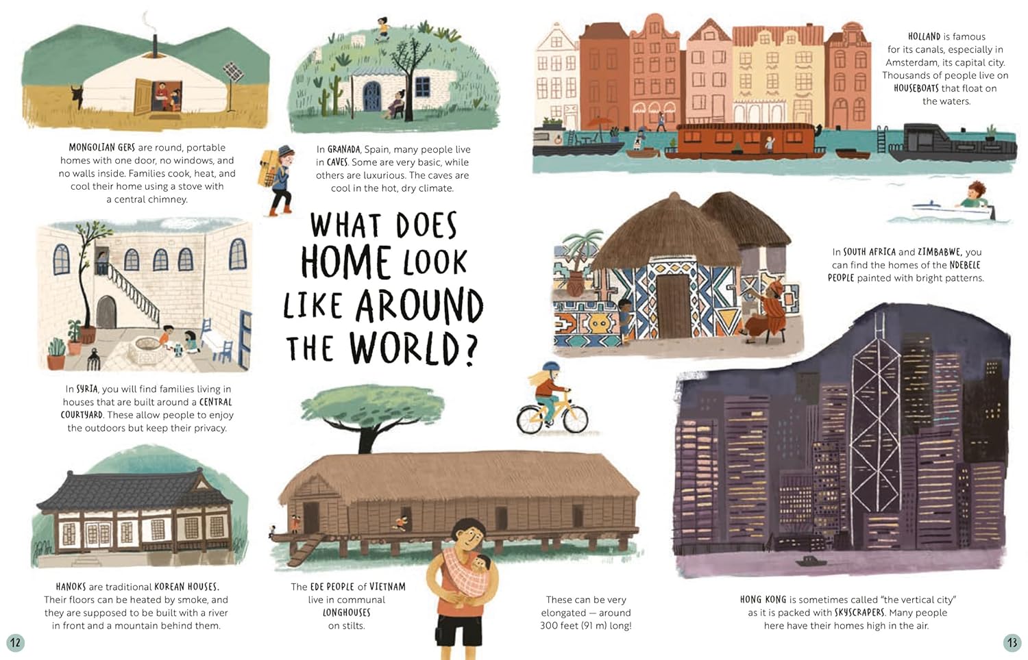 Young readers can discover what life is like for children all around the world as they explore everything from food to family, and even learn how to say hello in many different languages. They will see where it's polite to slurp your food and bad manners to give the thumbs-up sign. They'll learn where children travel to school by cable car, and even discover who sleeps on an oven bed at night! This fascinating look at the lives of children around the globe gives an important insight into the many differences to celebrate in our diverse, beautiful world.