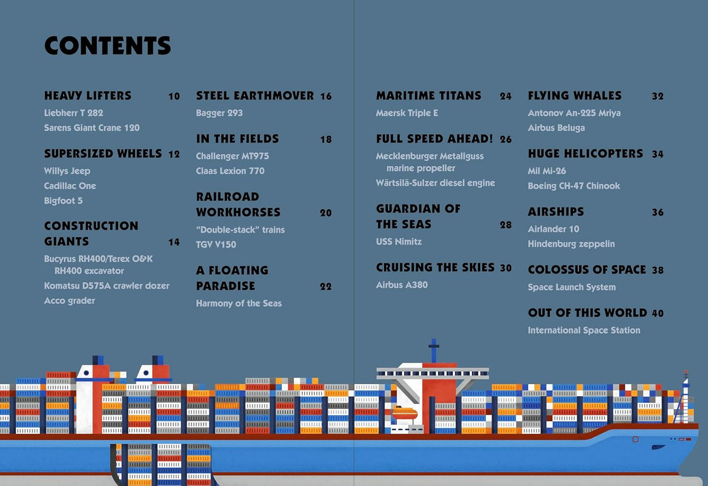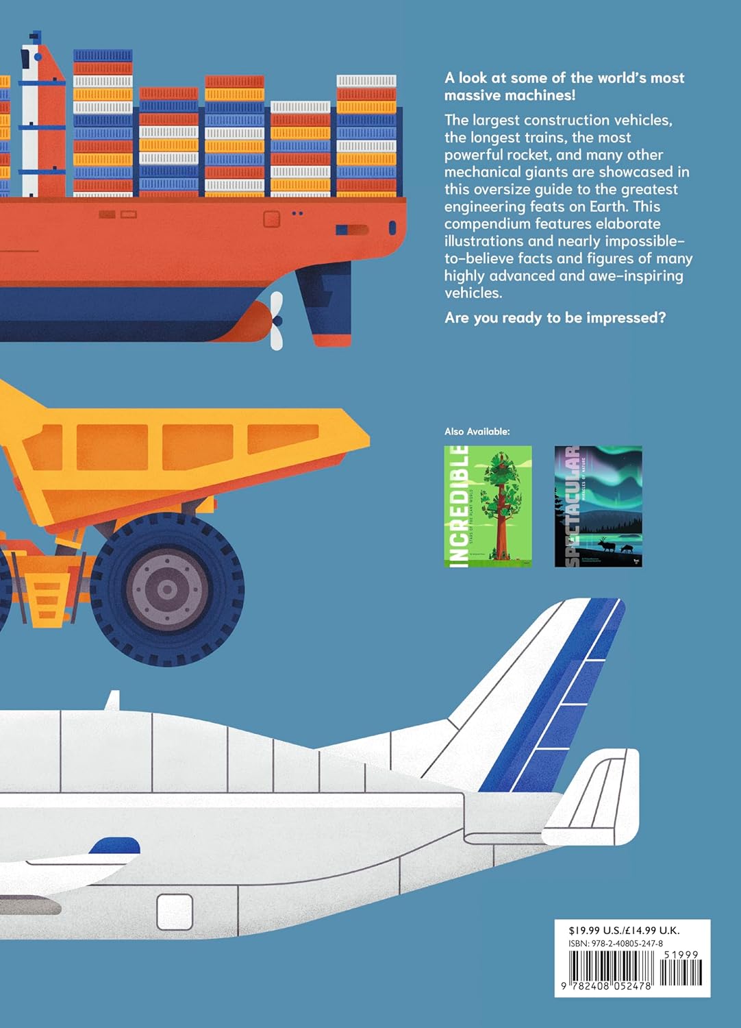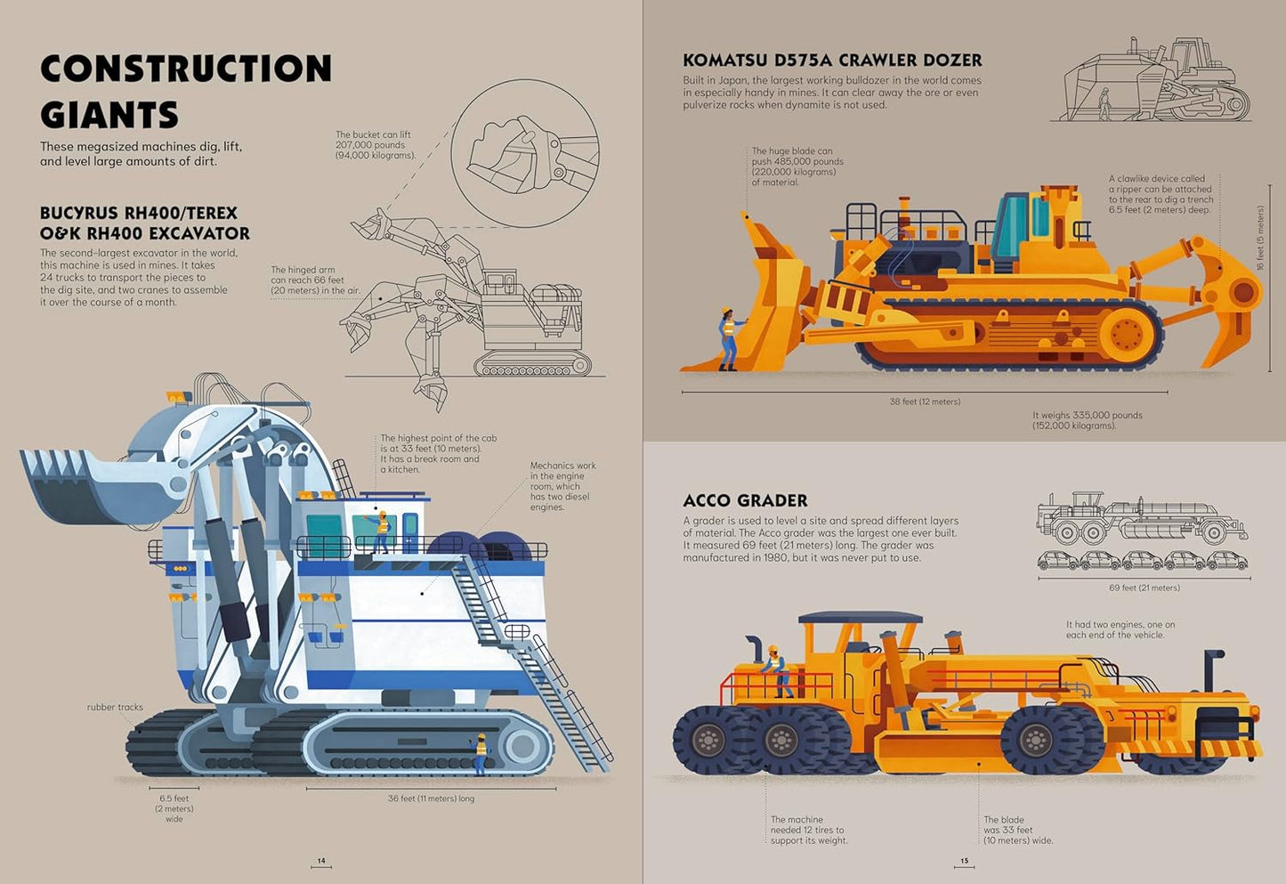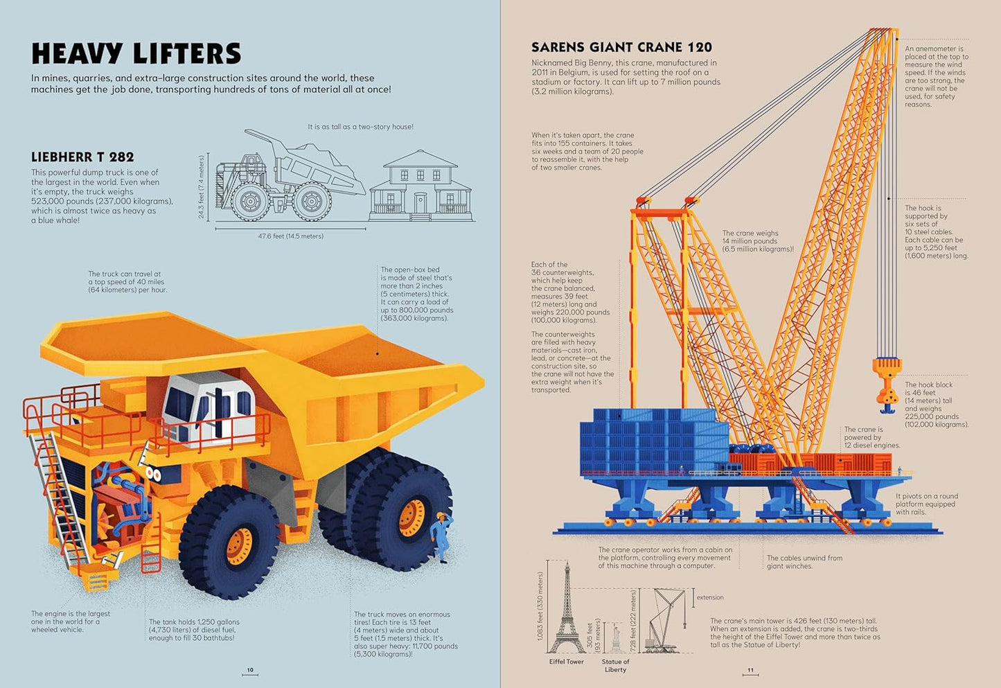 The biggest monster truck, the tallest construction cranes, the longest trains, and many more fill the pages of this large format book. The detailed illustrations are accompanied by fascinating facts and figures about each vehicle.
