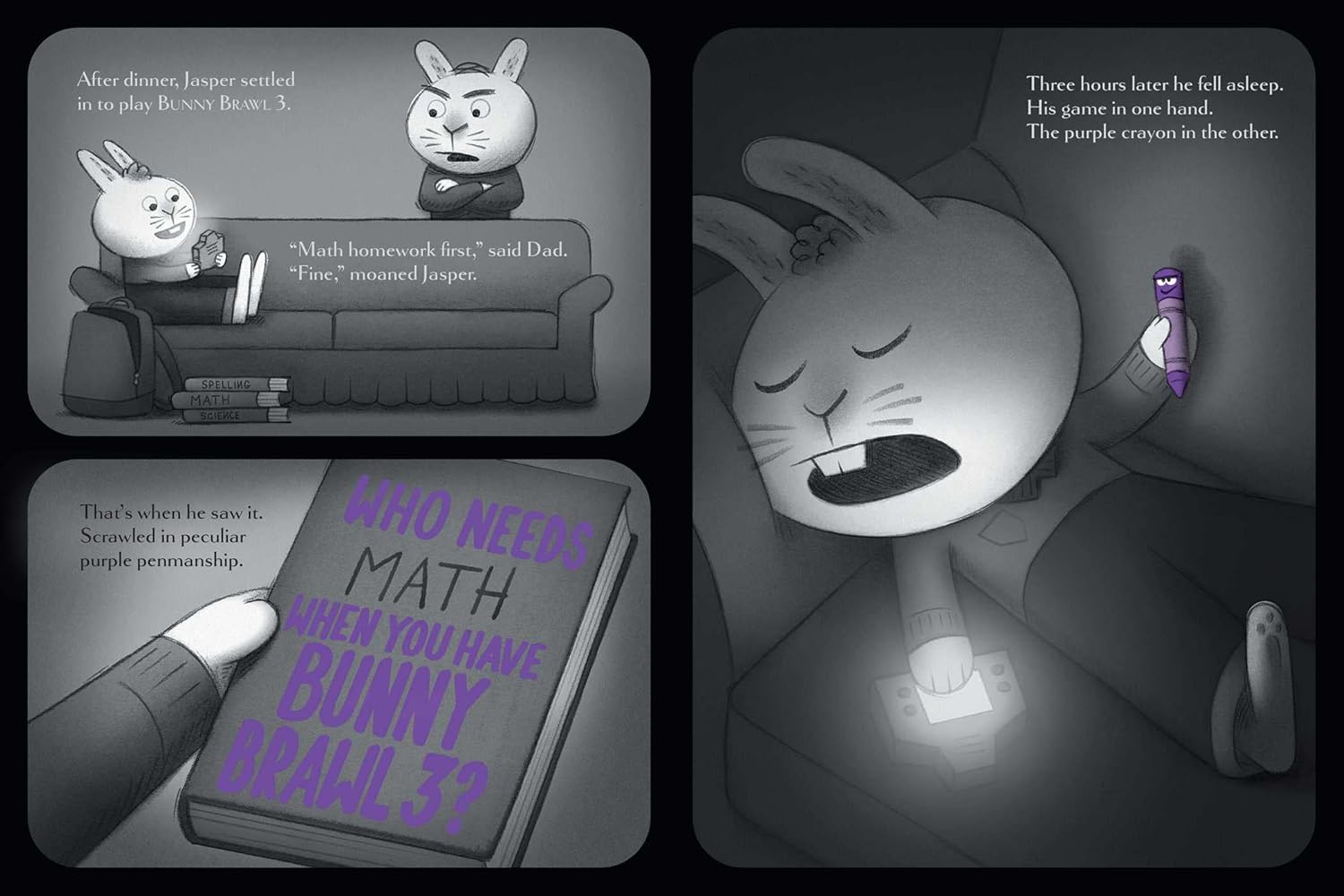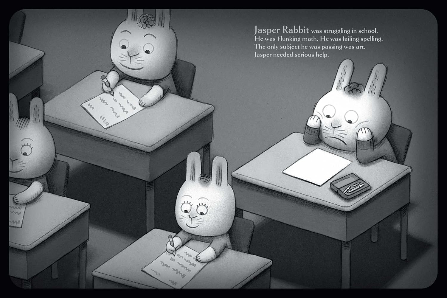Jasper Rabbit has a problem: he is NOT doing well in school. His spelling tests? Disasters. His math quizzes? Frightening to behold. But one day, he finds a crayon lying in the gutter. Purple. Pointy. Perfect. Somehow...it looked happy to see him. And it wants to help.