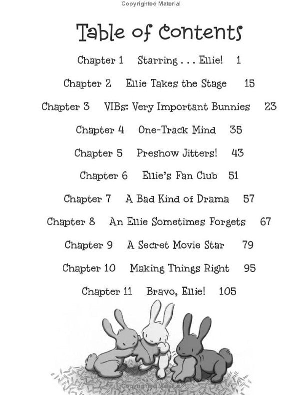 The Critter Club is up and running, and so are the girls--especially Ellie! She's wanted to perform her entire life, so when she lands the lead role in Santa Vista Elementary School's Spring Spectacular, it's her big chance to show her stuff! But as Ellie's big performance draws near, will she let the play and her determination to succeed get in the way of being a good friend? What about caring for the baby rabbits that were just brought to The Critter Club? Some very helpful advice from an unexpected source reminds Ellie that being a good friend is just as important as doing what you love.