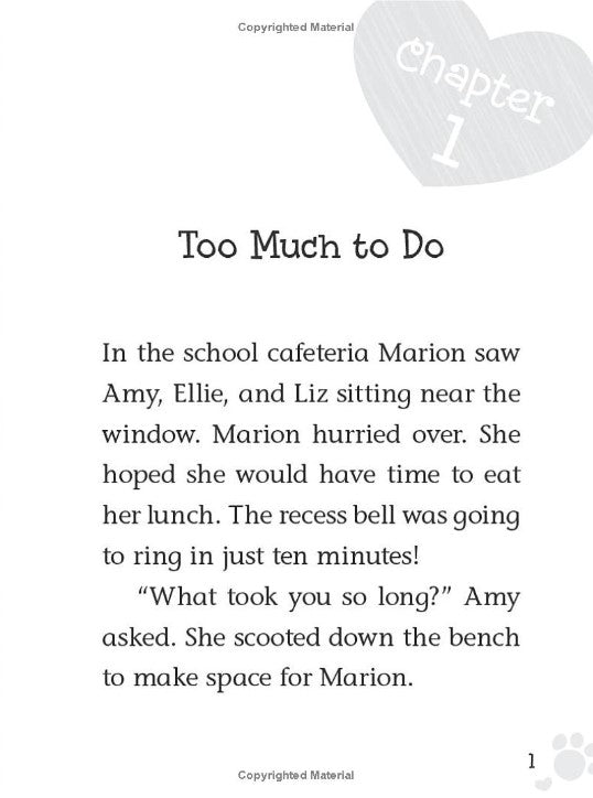 From violin lessons to training for an upcoming horse competition, Marion is scheduled to the max. Even though she always makes time for her duties at The Critter Club, she is beginning to feel overwhelmed. But when an accident forces Marion to slow down, Marion relies on her friends (the two- and four-legged ones) to cheer her up! As Marion's ankle heals, she discovers a new talent--and realizes that winning isn't everything.