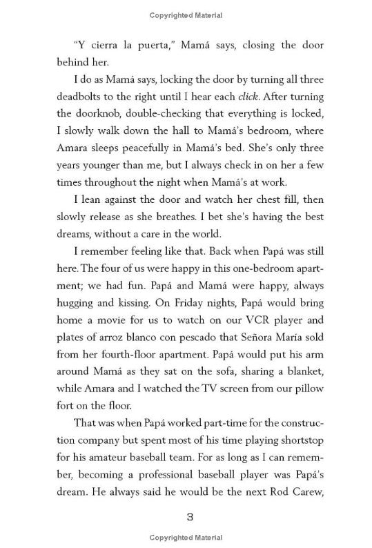 When Danilo unintentionally catches the eye of a baseball recruiter and is offered the opportunity to visit and train in California--the same place as his father's last known address--he is tasked with deciding to go or stay. But if playing baseball could help him find his father and secure the extra funds his family needs, Danilo is willing to travel anywhere, even to the very country responsible for destroying his home.