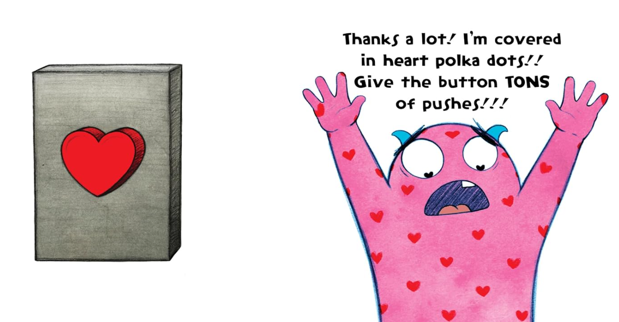 "Larry the monster has spotted a heart-shaped button. You probably shouldn't push it...