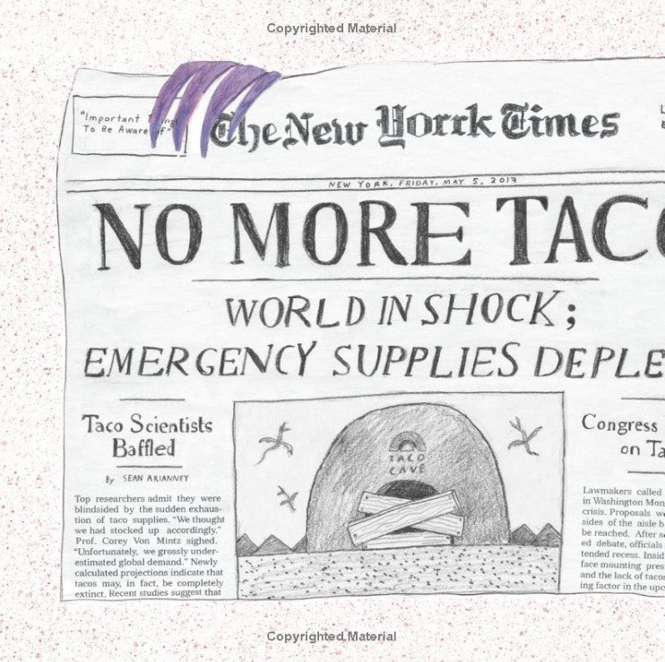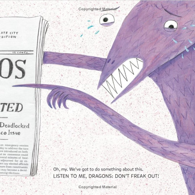 "News alert! It has just been discovered that there are NO MORE TACOS left anywhere in the world. This is a huge problem because, as you know, dragons love tacos. If only there was a way for the dragons to travel back in time, to before tacos went extinct. Then they could grab lots of tacos and bring them back! It's the perfect plan, as long as there's no spicy salsa. You remember what happened last time..."