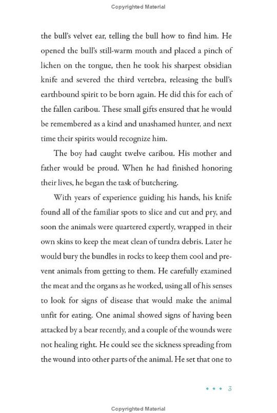 As his family prepares for winter, a young, skilled hunter must travel up the mountain to collect obsidian for knapping―the same mountain where his two older brothers died.
