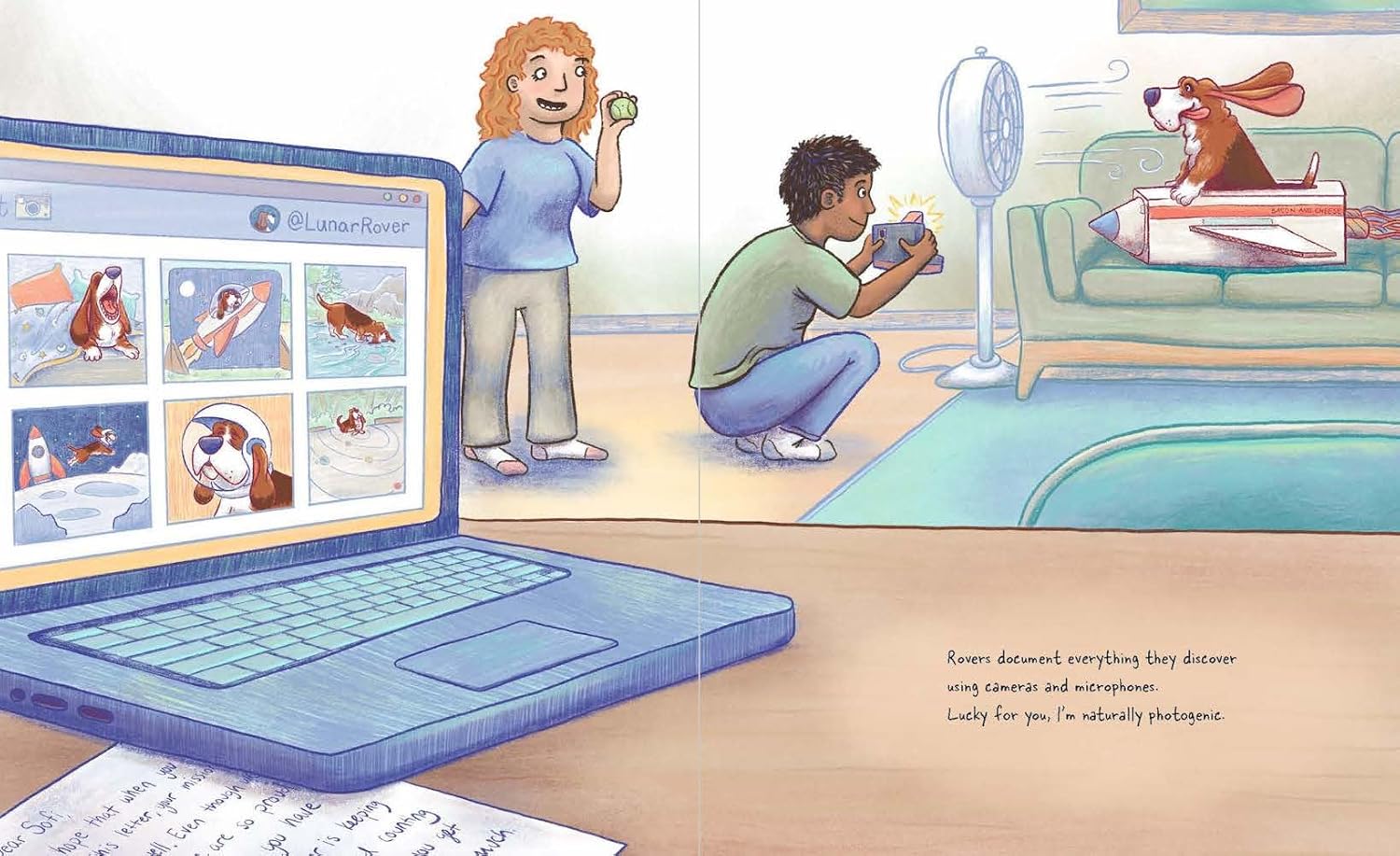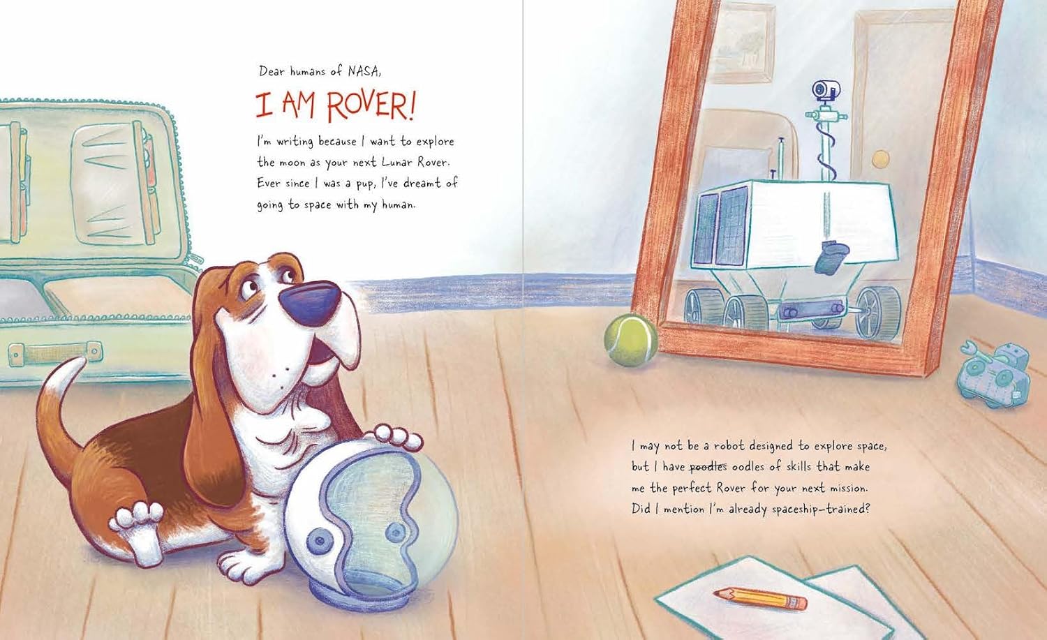 Dear Humans of NASA, I am Rover! I'm writing because I want to explore the moon as your next Lunar Rover. Ever since I was a pup, I've dreamt of going to space with my human . . .