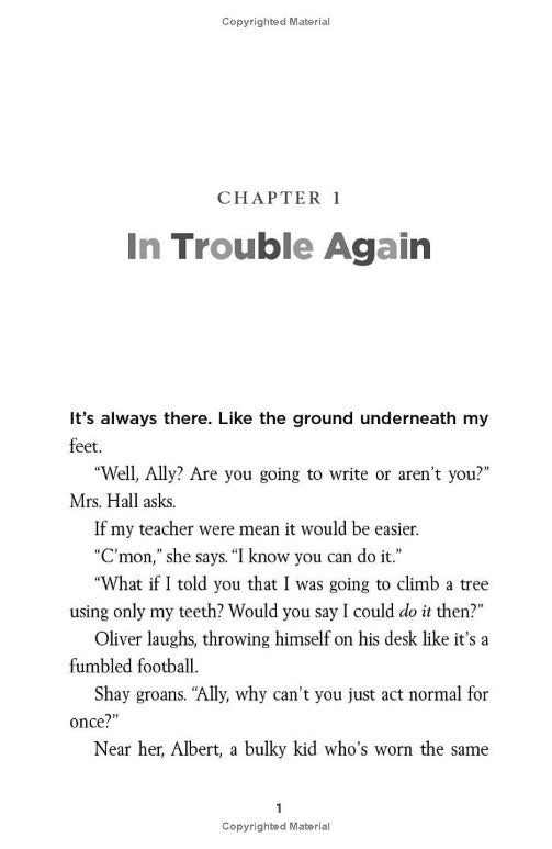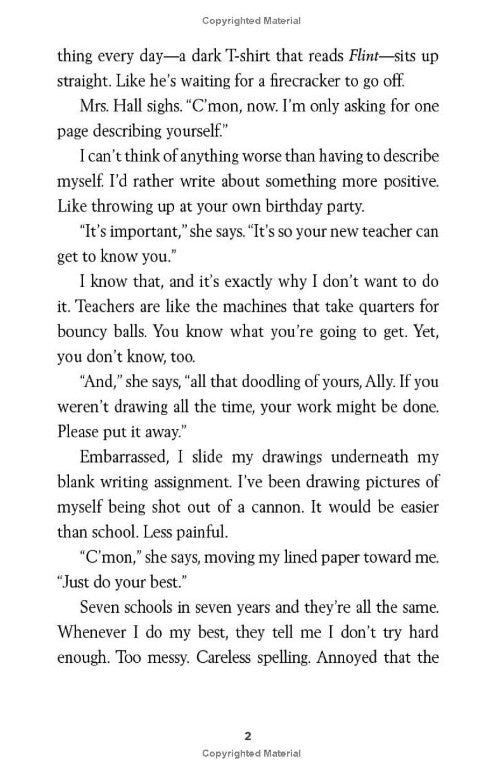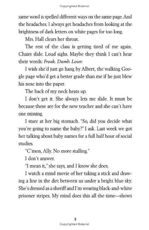 "Ally has been smart enough to fool a lot of smart people. Every time she lands in a new school, she is able to hide her inability to read by creating clever yet disruptive distractions. She is afraid to ask for help; after all, how can you cure dumb? However, her newest teacher Mr. Daniels sees the bright, creative kid underneath the trouble maker. With his help, Ally learns not to be so hard on herself and that dyslexia is nothing to be ashamed of. As her confidence grows, Ally feels free to be herself and the world starts opening up with possibilities. She discovers that there's a lot more to her--and to everyone--than a label, and that great minds don't always think alike."