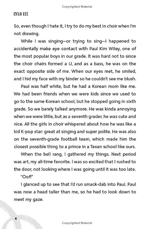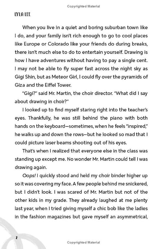 "Jiyoung "Gigi" Shin loves to create, from her zany outfits to self-executed haircuts. She dreams of becoming an artist and doodles every chance she gets--at school instead of taking notes, in choir instead of singing, and at home instead of homework. Art is her way of escaping her boring life in suburban Middle of Nowhere, Texas. Unfortunately, her working class, immigrant parents want her to focus on her studies and pursue something more "practical." Gigi only really feels like herself in art class and at lunch with her best friends, Carolina and Zeina.