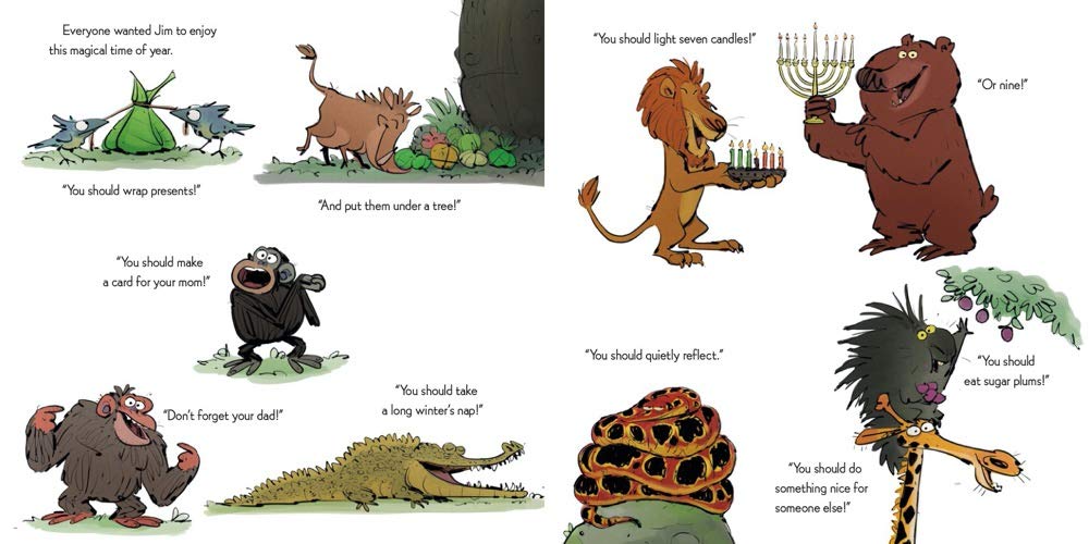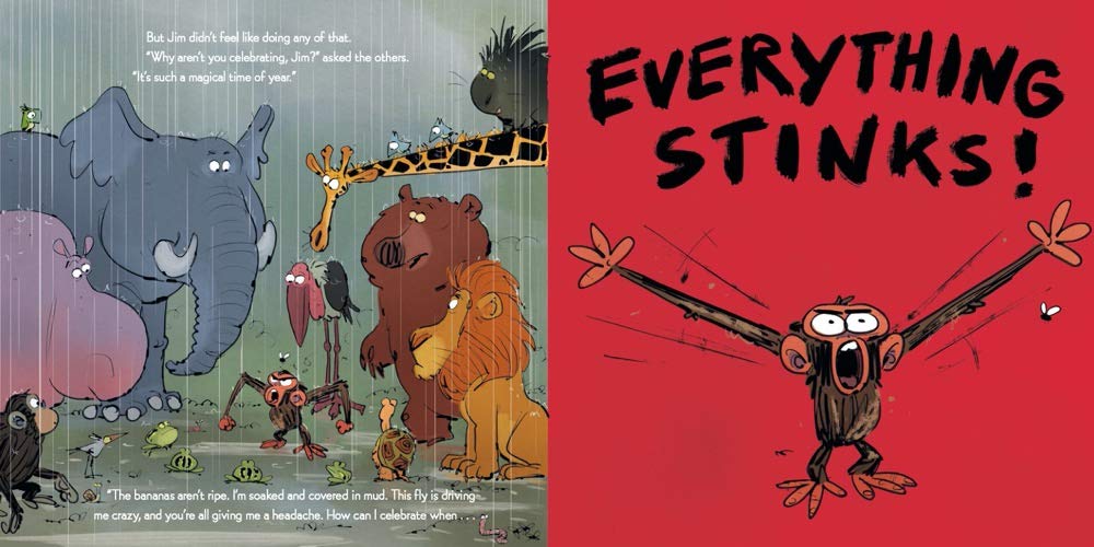 "It's Christmas time in the jungle, and Jim just can't get into the holiday spirit. Then Jim eats a "festive" green banana that makes him feel sick. Now everything seems worse. While all the other animals in the jungle are ready and eagerly awaiting Christmas, Jim can't stop feeling that this time of year stinks. But with his good friend Norman's help, Jim discovers that focusing on the good things around him instead of his own problems, is a reason to celebrate."
