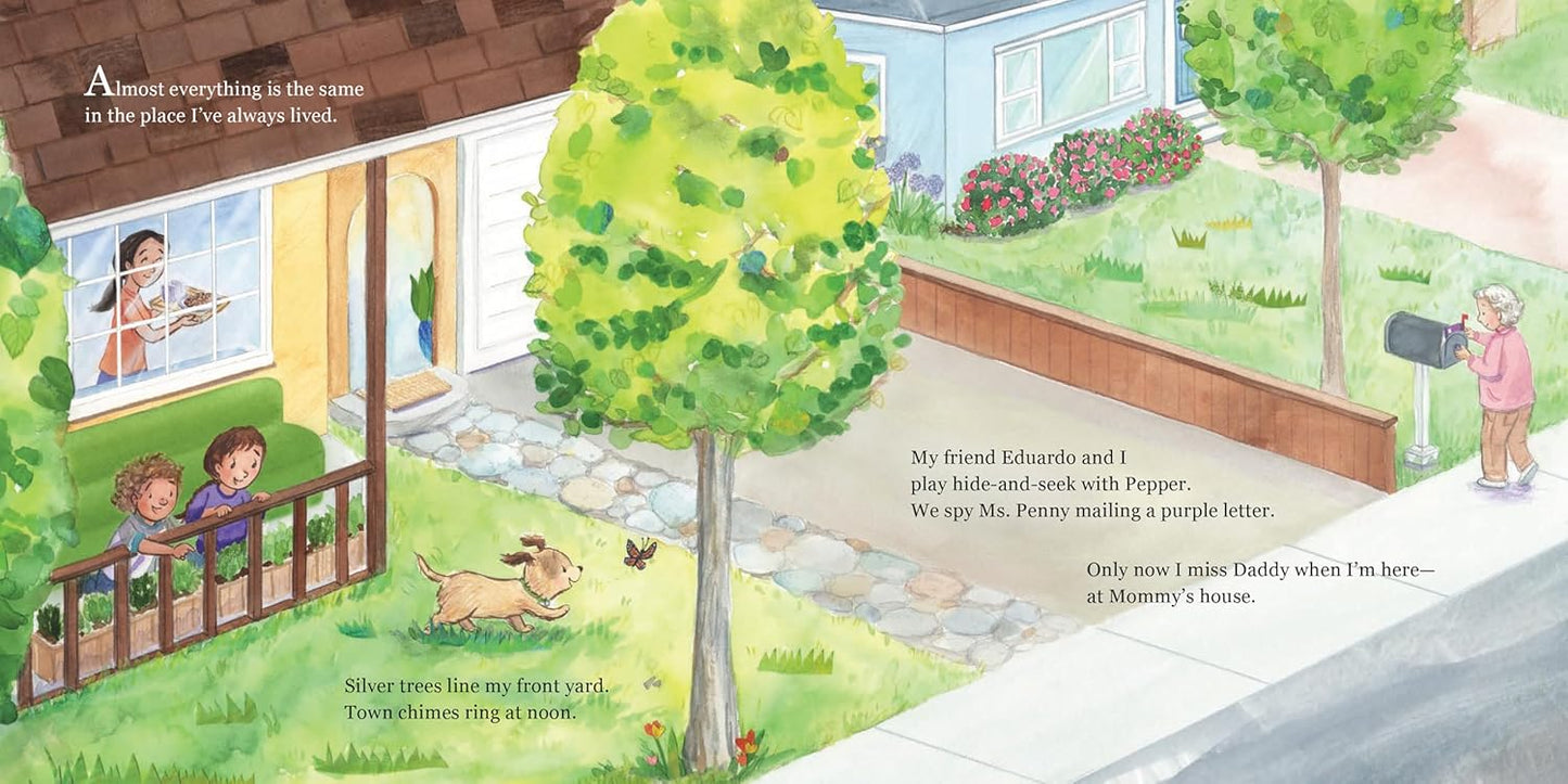 Leilah misses the time when her mom and dad were together. Ever since they divorced, her world and her heart feel split in two. She explores the city with Dad and walks Pepper at the park with Mom. She and Dad watch fireworks on the balcony, and Mom helps her make snowmen in the front yard. As Leilah moves back and forth between her two worlds, she wonders if her heart will ever feel whole again. Everything is just so different. Until one day she realizes that love is all around her, and the love her parents share for her will always stay the same.