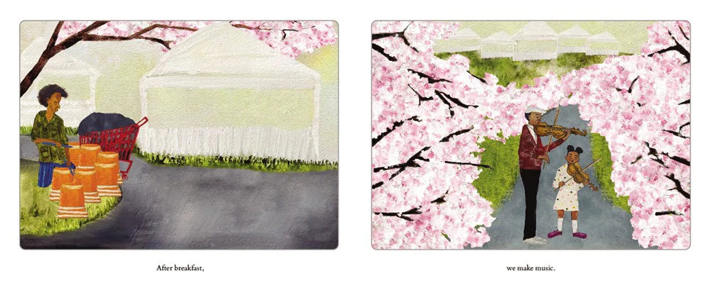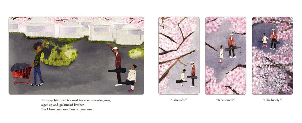 Mister Blue lives outside, and he and his music have always brought Papa's community together. At the end of the day, the young girl has many questions for Papa. Is Mister Blue safe? Scared? Lonely, hungry? With her curiosity and kindness, she can change things for the better, for at least one person and one night."