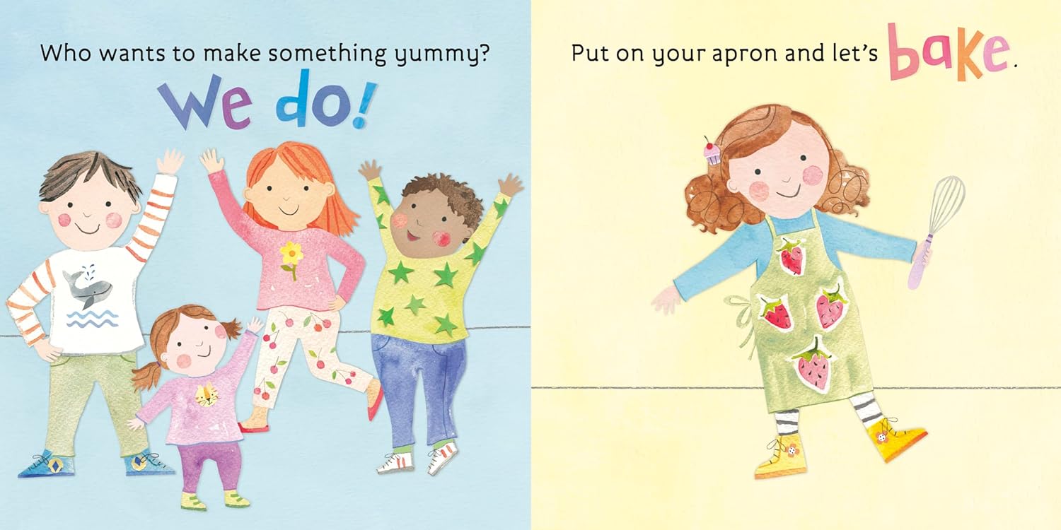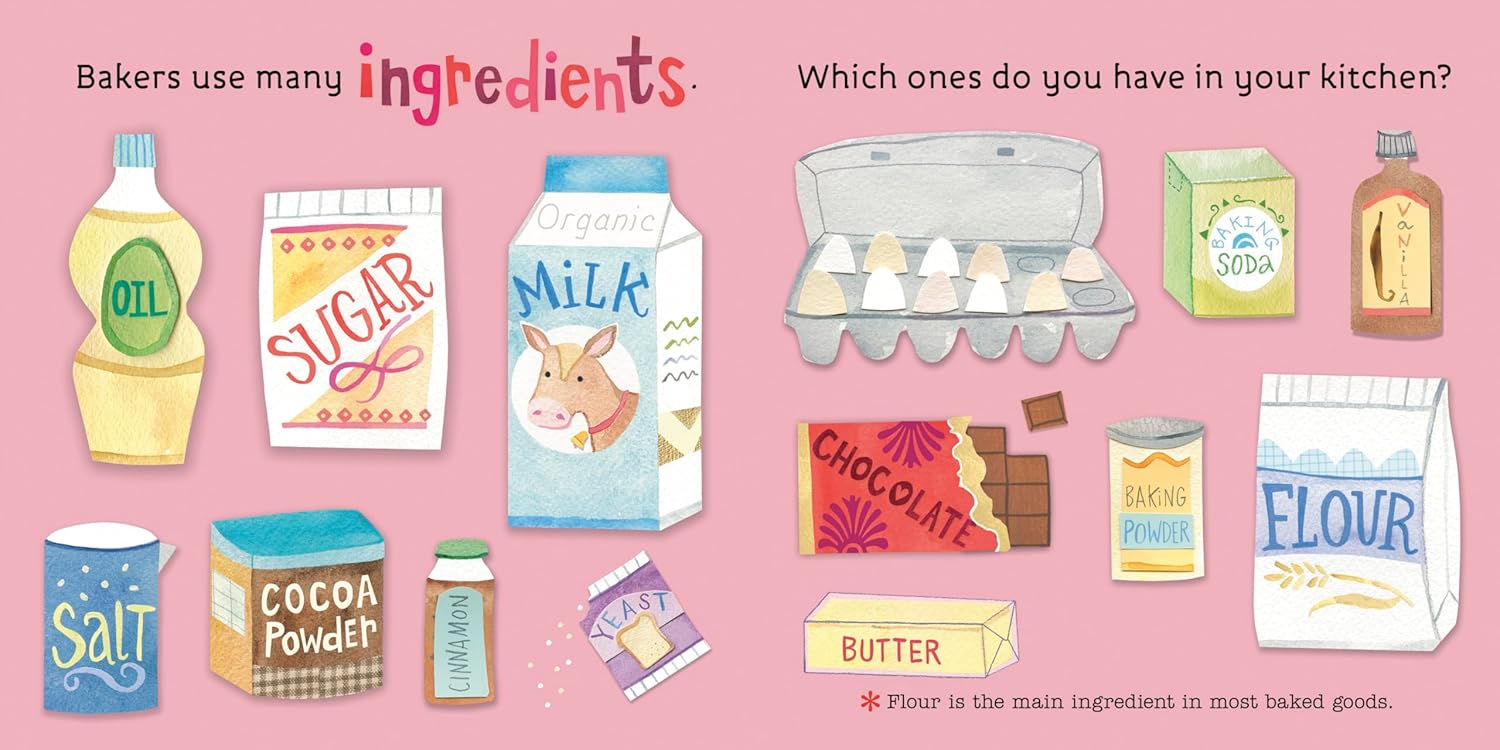 Told in easy-to-understand terms alongside bright illustrations of baking utensils, ingredients, and treats such as pies, cupcakes, bread, and cookies, this sturdy book makes learning easy for little ones and offers useful prompts to help adults engage with the reader on each page.