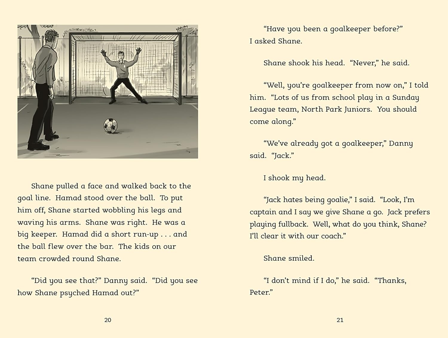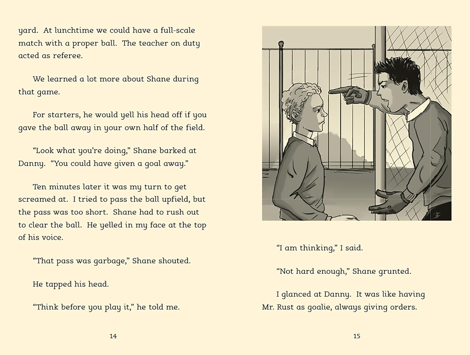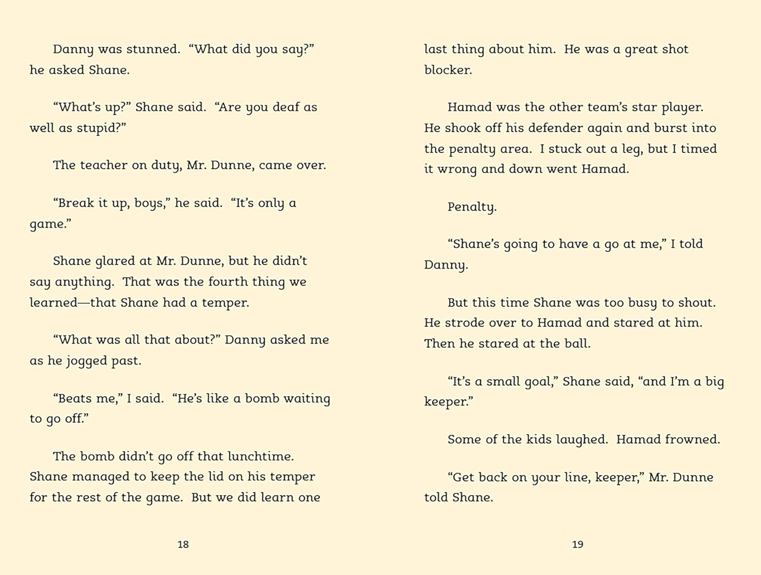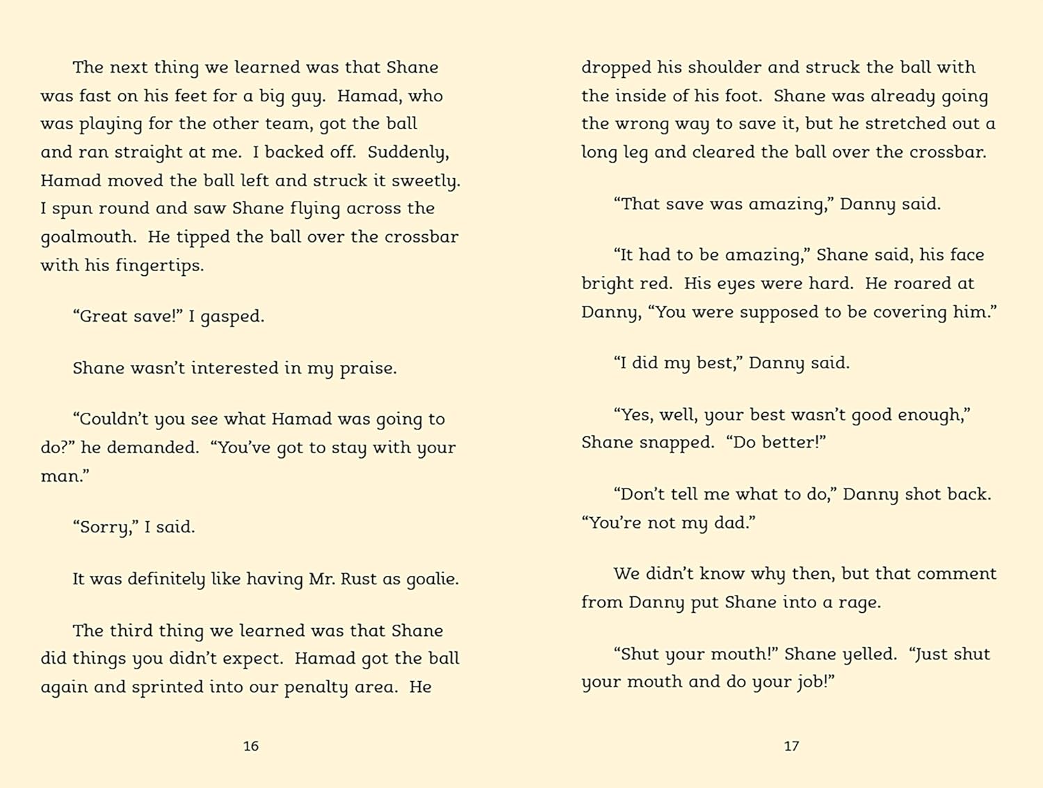 "The North Star soccer team is thrilled when Shane, the new boy at school, turns out to be a talented goalkeeper. But Shane has a temper that gets him in trouble and a demanding father who acts out on the sidelines at every game. Soon Shane's teammates start to worry that something is really wrong--and that Shane's not nearly as tough as he seems."