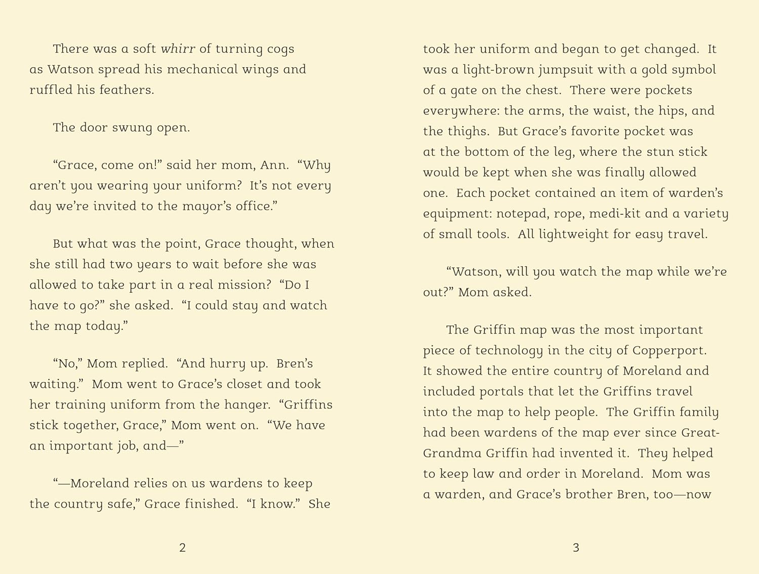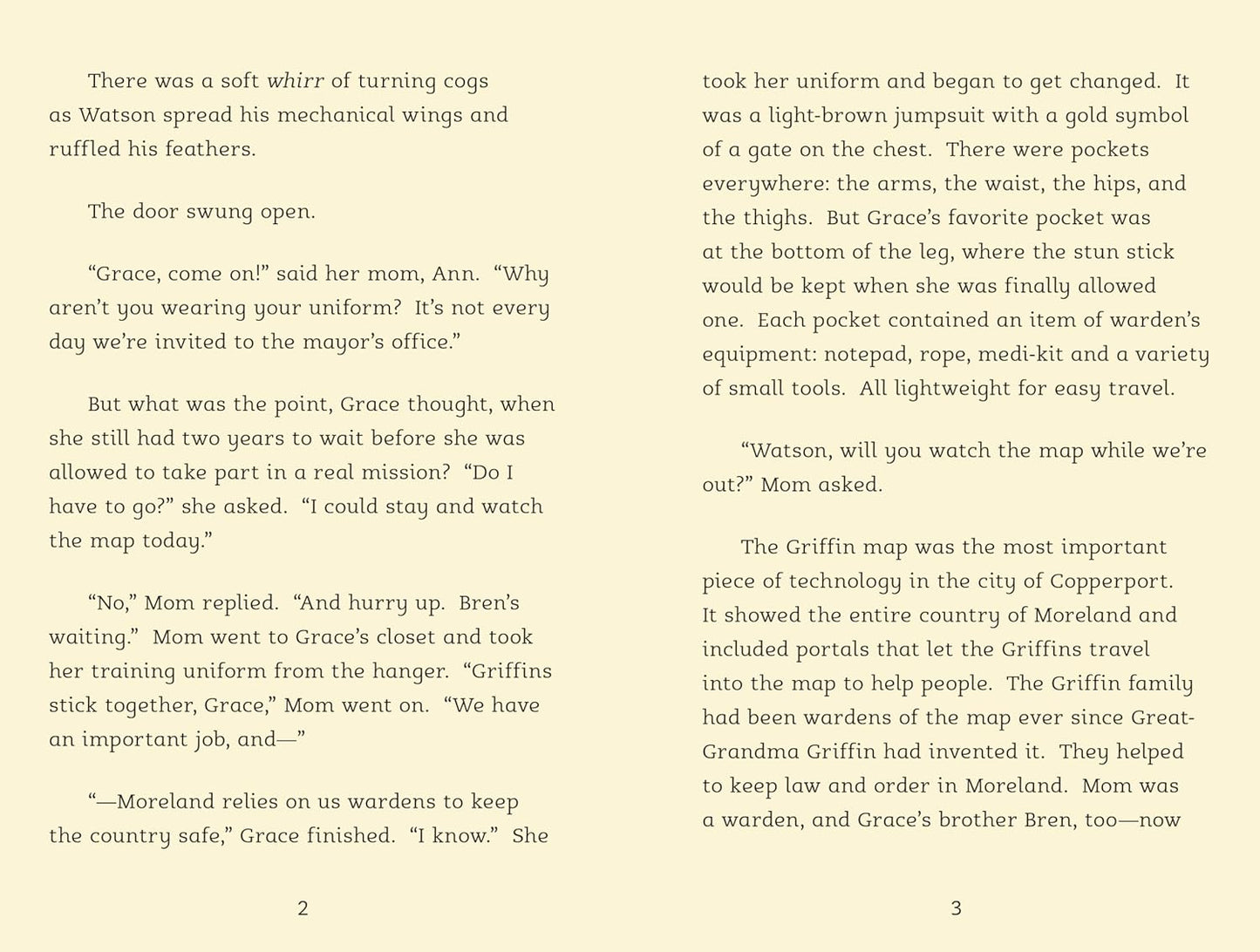 "Grace's family are wardens of the Griffin Map, using its teleport technology to fight crime across Moreland. Although Grace is still too young, she longs to go on missions herself.