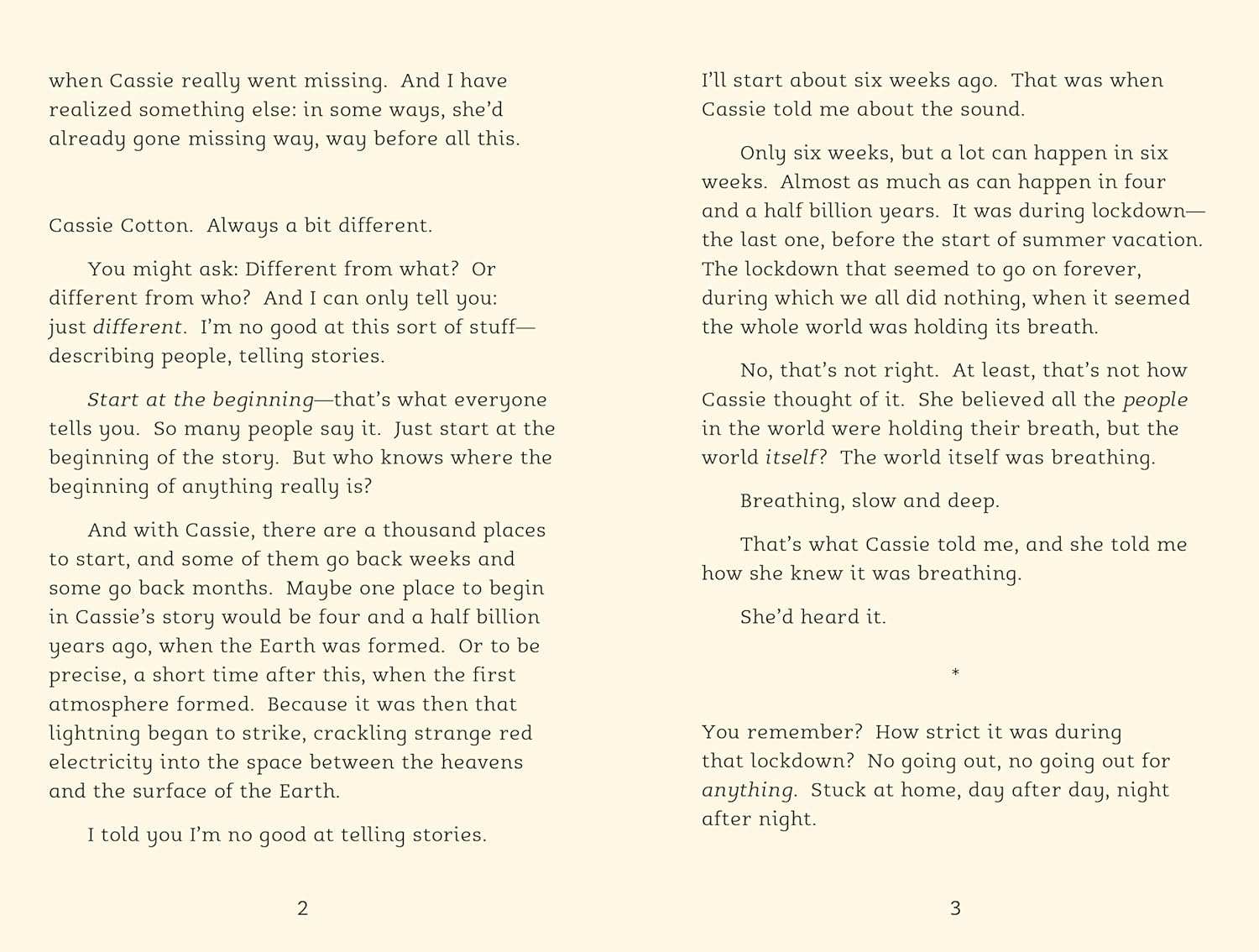 Cassie can hear a noise that no one else can, and she believes it's a sound that shows the Earth is in distress, damaged by human activity that is causing climate change.