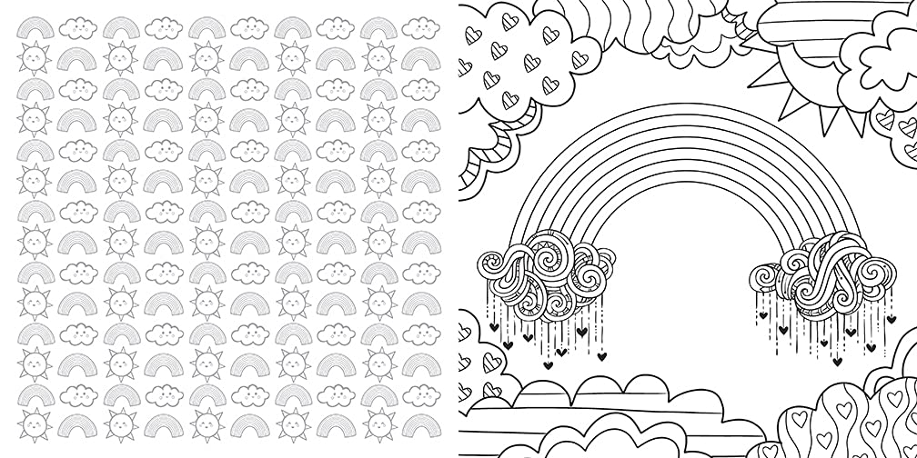 Take out your crayons, pencils, pens, or paints, and start coloring in a beautiful world full of rainbows, luscious plants, flowers, and adorable animals. Complete with intricate designs, pretty patterns, and the prettiest rainbows you've ever seen, this coloring book will entice children and adults to bring these scenes to life with a rainbow of hues.