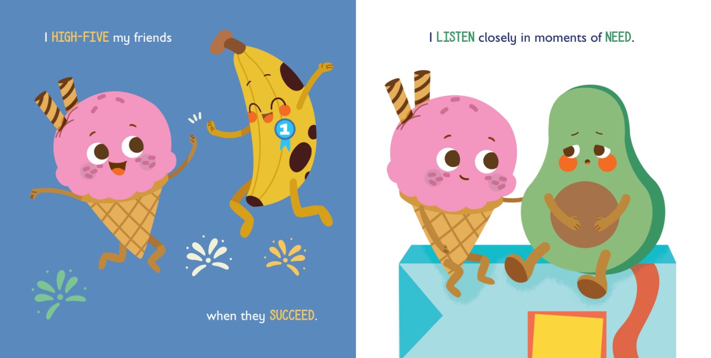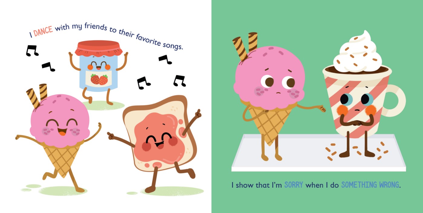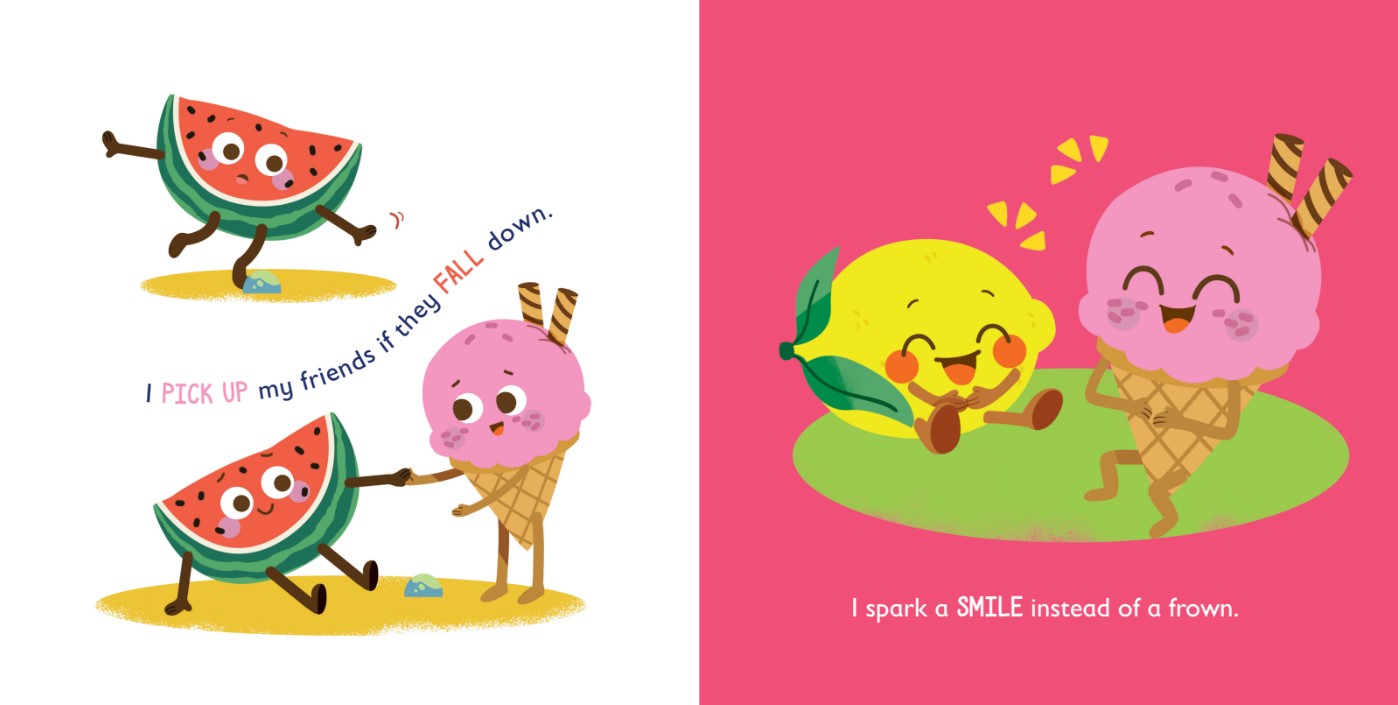 Spread kindness like sprinkles on ice cream! Follow an adorable ice cream cone along on a sweet journey introducing kind actions while promoting a playful and interactive learning style.