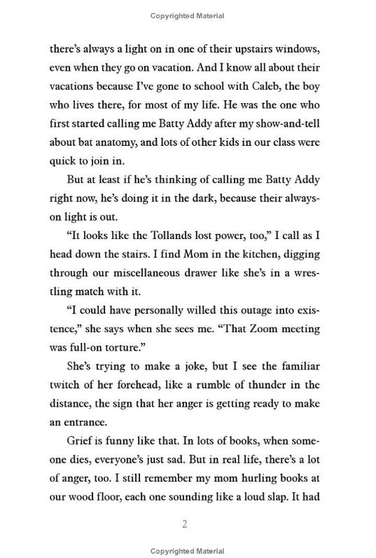 The two of them are feeling particularly stranded as they've never bothered to befriend any neighbors. But now Addy keeps running into her classmate Caleb on the hill above her house where they both go to get cell service. Caleb's frantic about a missing neighbor, and Addy's amazed to see how he's able to connect with folks to get help. Then Caleb offers to help her get to camp--but can she trust him? She always thought of him as an enemy--but maybe she was partially to blame for his frostiness?