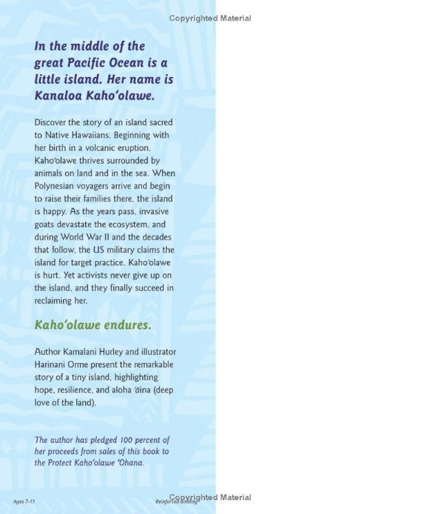Author Kamalani Hurley and illustrator Harinani Orme present the remarkable story of the smallest Hawaiian island, encompassing loss and erasure, sacrifice and dedication, and ultimately restoration, highlighting hope, resilience, and aloha 'āina (deep love of the land).