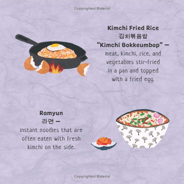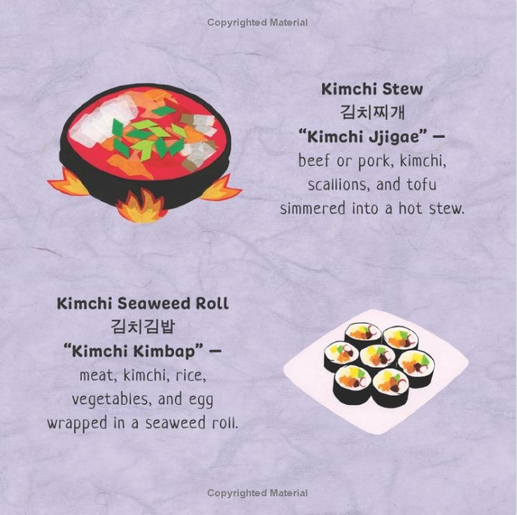Explore the different ways to eat kimchi in this fun, rhyming tale that also teaches the days of the week. Korean-American author-illustrator Erica Kim shares her pride in her delicious cultural food through her cut paper art technique. The Hanji paper that is used to illustrate the book comes from a paper mulberry tree native to Korea.