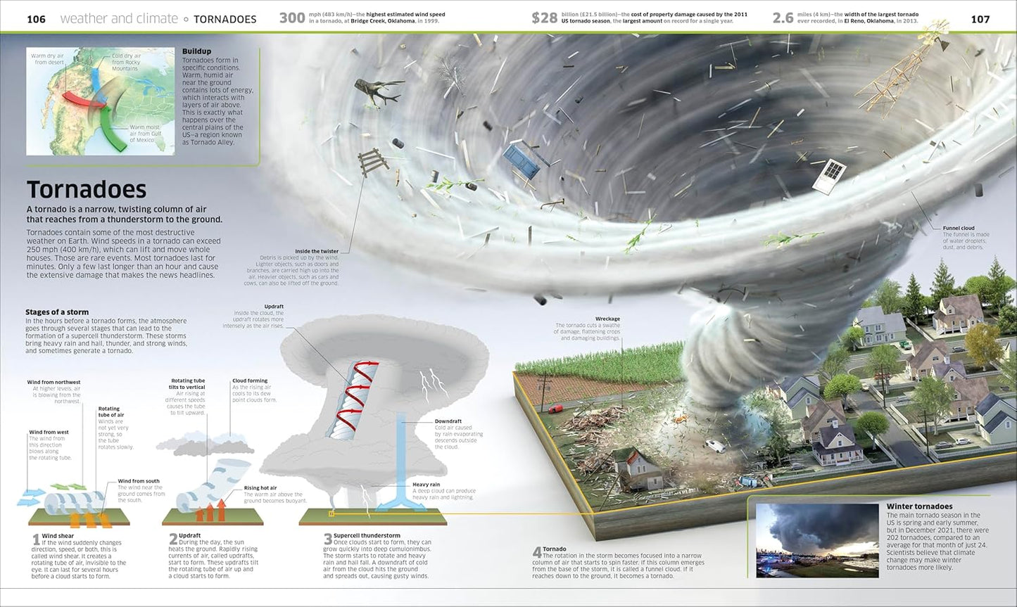 Forming part of a fantastic series of kid's educational books, this bold and brilliant kid's encyclopedia uses ground-breaking CGI imagery to reveal the world as you've never seen it before. Informative, diverse in subject matter, easy-to-read and brimming with beautiful graphics, young learners can explore the incredibly detailed cross-sections and cutaways that reveal the inner workings of the world around them, featuring floods, hurricanes, volcanoes, deserts and more.