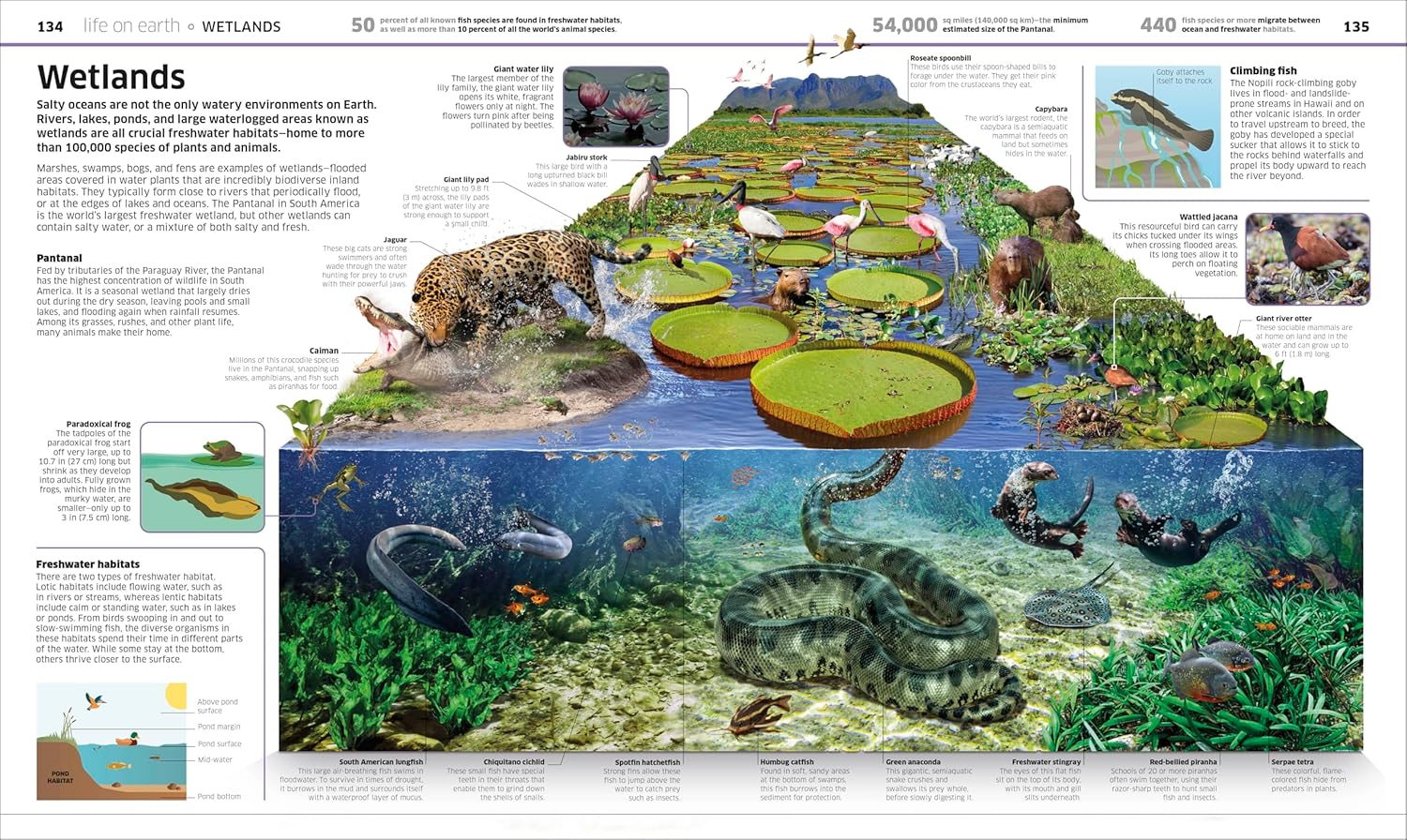 Encourage youngsters to explore habitats and ecosystems - inside caves, among enormous redwoods, on the savannahs, or deep down under the oceans. This extraordinary encyclopedia fuels your imagination using its jaw-dropping visual approach to explain everything from what keeps Earth in its place to the great diversity of plants, animals, and people who live on it, why it is unique and how it is changing.