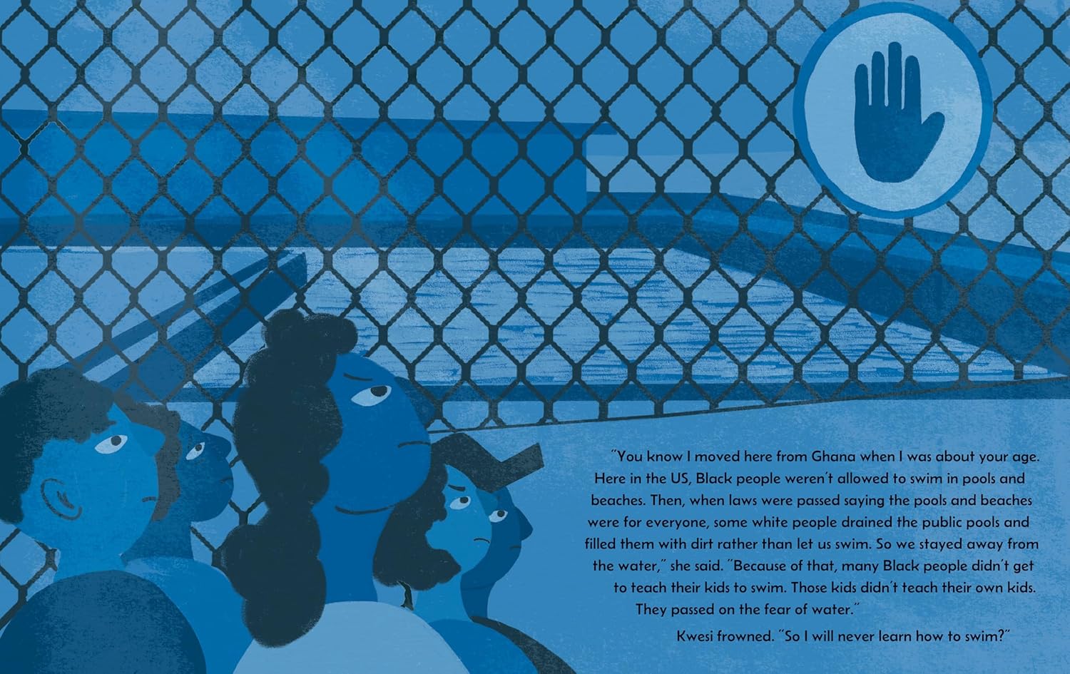 Kwesi likes spending time at the lake with his friends, except there's one tiny problem... he can't swim. But guess what? Neither can Nana Ruby! When she comes over for dinner one night, she tells Kwesi about when she moved from Ghana to the US and the history of segregation that kept her out of pools and caused a fear of water among many Black people.