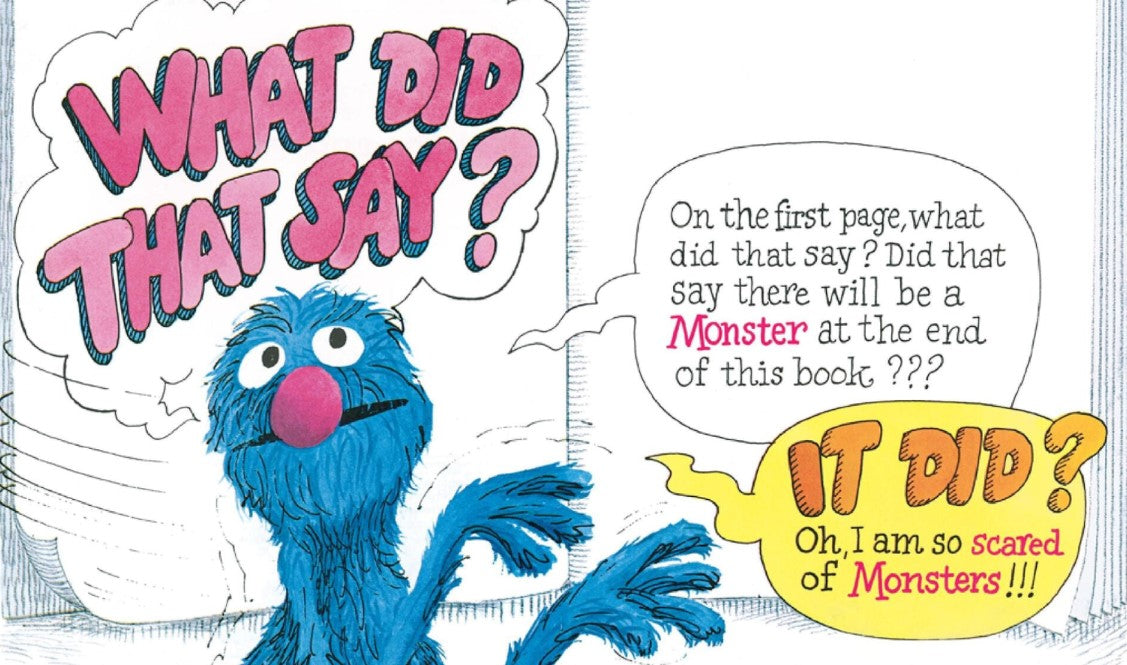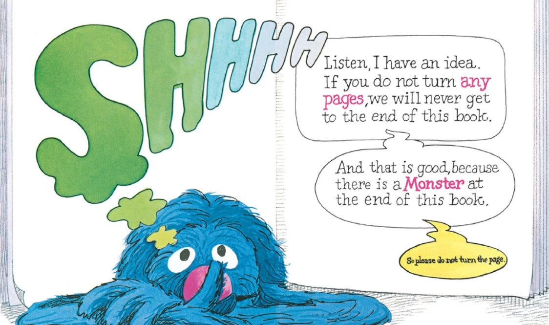 Read along as Grover begs you not to turn the page -- because there is a monster at this end of this book!