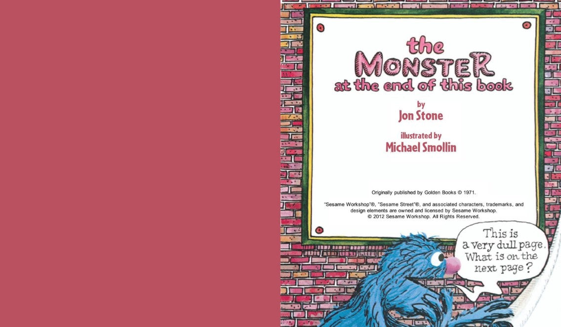 Lovable, furry old Grover is distressed to learn that there's a monster at the end of this book! He begs readers not to turn the pages, but of course kids feel they just have to see this monster for themselves. Grover is astonished--and toddlers will be delighted--to discover who is really the monster at the end of the book!