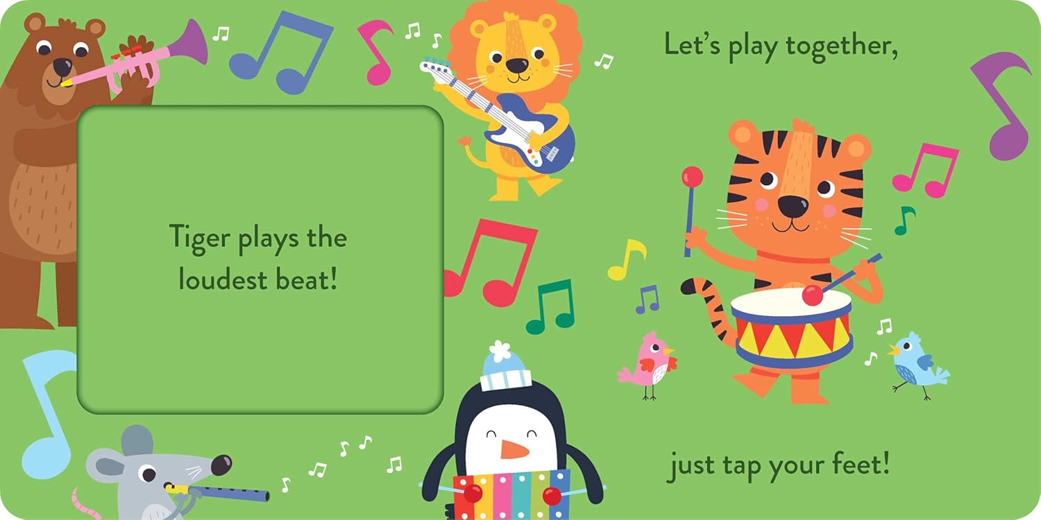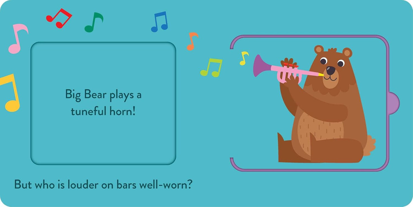Children will love comparing all the animal musicians in this delightful board book with die-cut windows you can lift and look through!