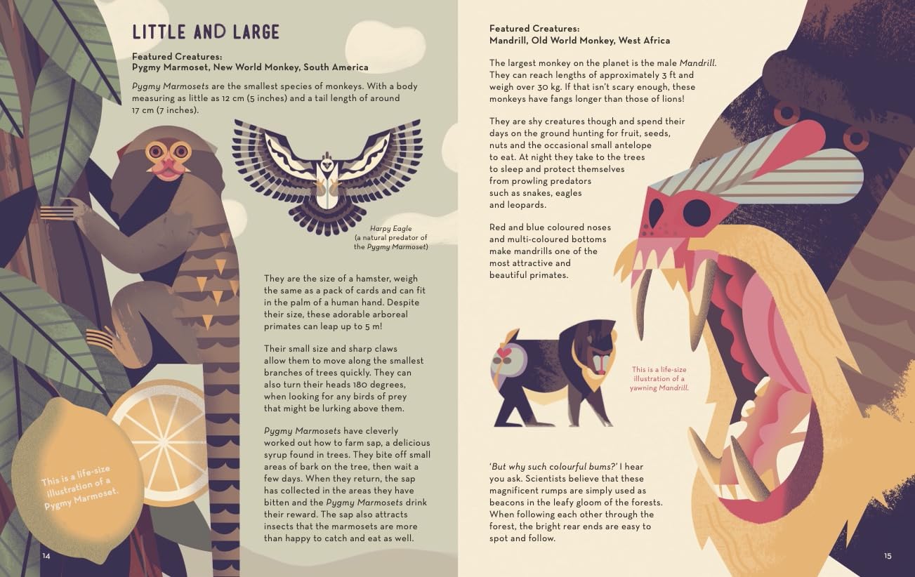 With over 250 species inhabiting our planet, this book explores the many different types of monkeys from the smallest Pygmy Marmoset to the largest Mandrill, and provides all the facts you wanted to know and more.