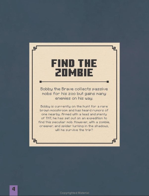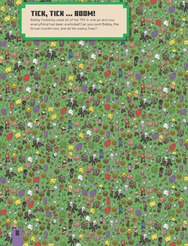 Find the hidden creepers, llamas, villagers--and ZOMBIES!!! This hardcover activity book will entertain Minecraft fans ages 6 to 8 as they search for hidden mobs and game characters in the highly-detailed scenes.