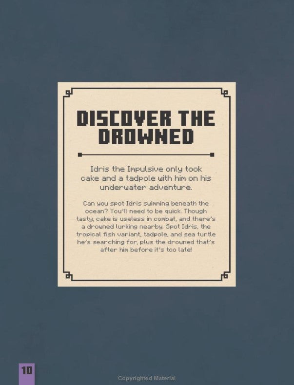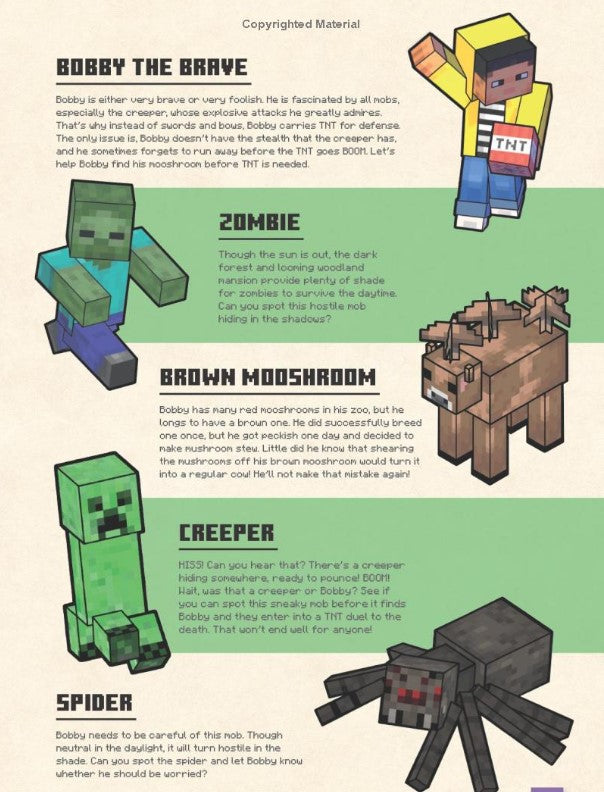 Look carefully! Zombies could be hiding anywhere! This full-color activity book is perfect for Minecraft fans of all ages to find hidden mobs and more throughout its intricately illustrated pages!