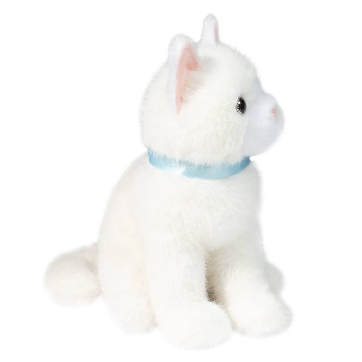 As bright as freshly fallen snow, our Mini White Cat stuffed animal is an enchanting feline companion! Soft as a cloud, luxurious plush materials are a treat for the senses and will ensure that once this sweet kitten is in your hands, you’ll want to hold her there permanently. Her graceful appearance is accented with pale pink lining within her ears and a tiny, flocked nose. We’ve outfitted her with a silky blue collar, which lends a touch of color to her design. Her seated pose and lively, dark eyes will have you believing she’s keeping tabs on your day. Sure to capture the imagination, let our Mini White Cat plush steal away with your heart!