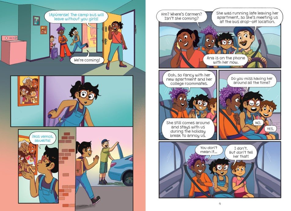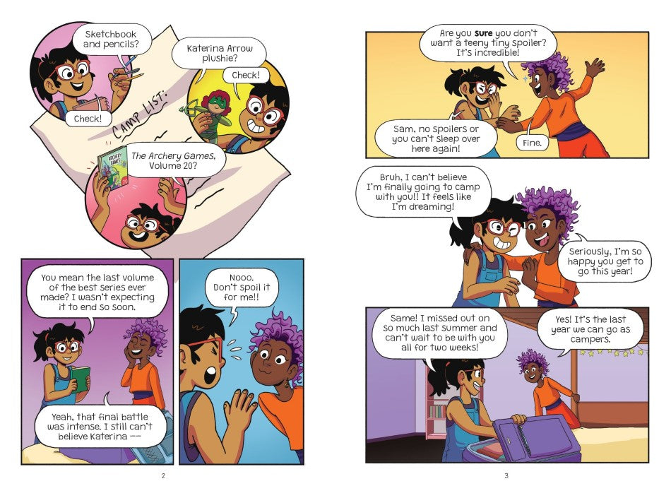 Sue is heading to Camp Willow this summer! She's looking forward to hiking, archery, and making comics in the fresh air. She's especially excited about LARPing (live-action role-playing) and can't wait for the freedom of being away from home. But she won't be far from family because her big sister, Carmen, is a camp counselor and her little sister, Ester, is a fellow camper and won't give her any space! All Sue wants is to make memories with her friends, but they're assigned to only a few of the same activities. To make matters even worse, her best friend, Sam, has a best camp friend named Marisol? And Sue's good friend Izzy has a crush on Sue?! This summer isn't at all going as planned!